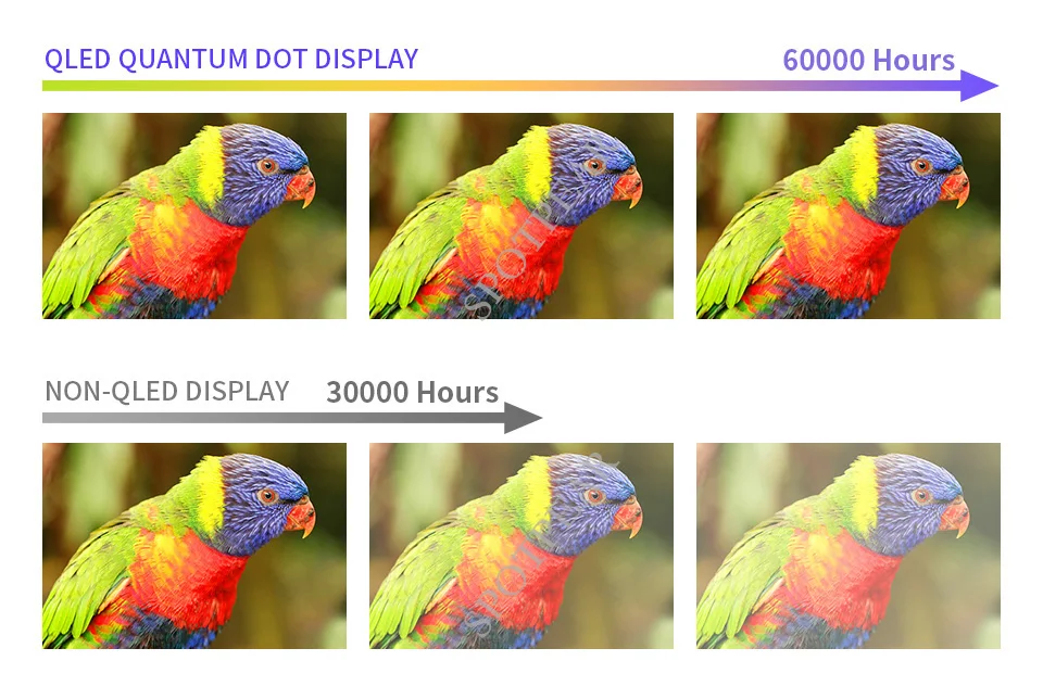 Debido a su característica inorgánica, la vida útil del color del QLED podría ser de hasta 60000 horas sin degradación del color