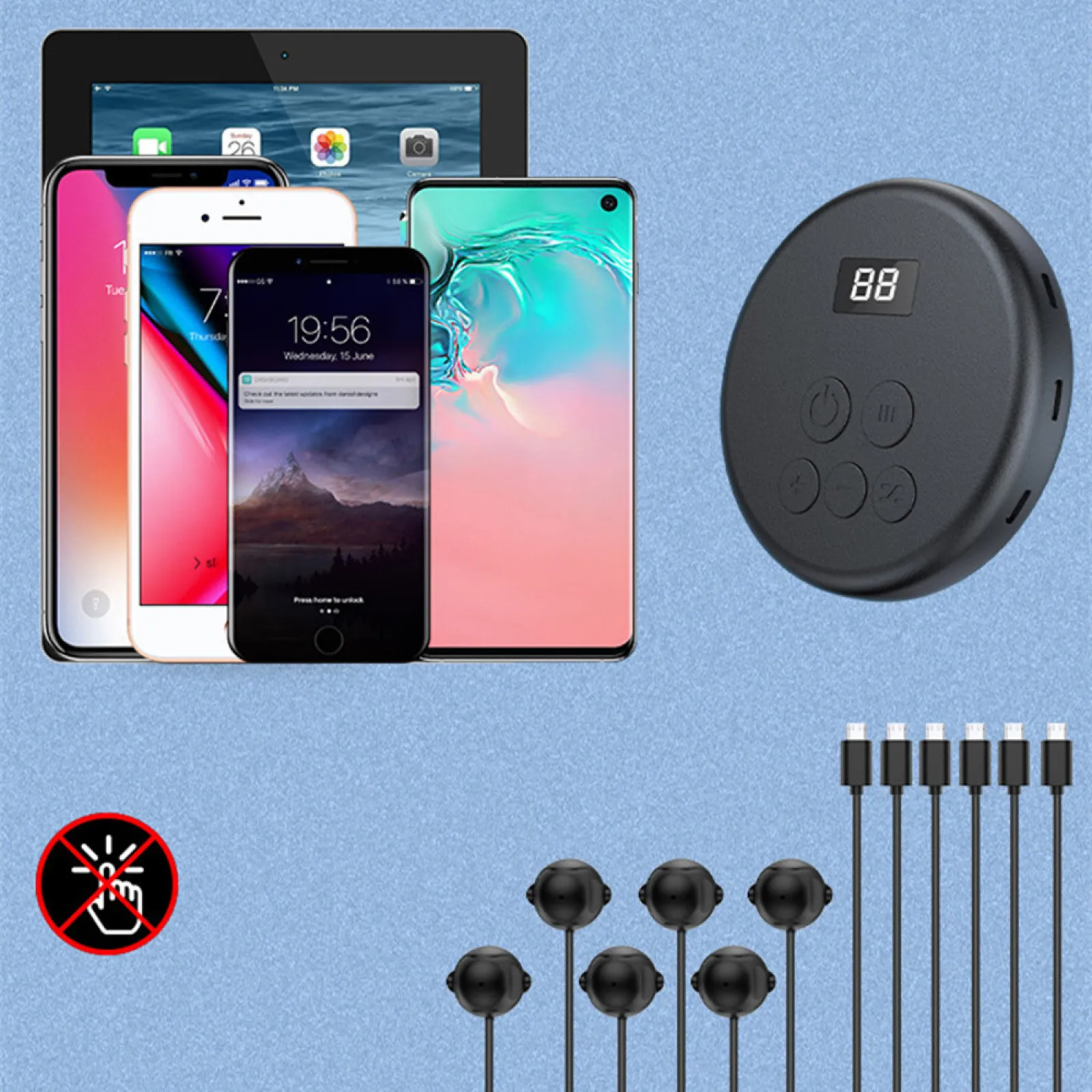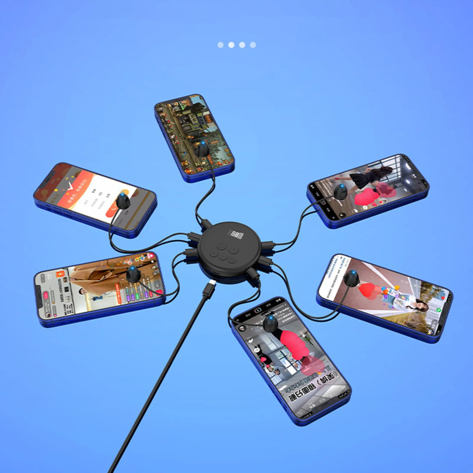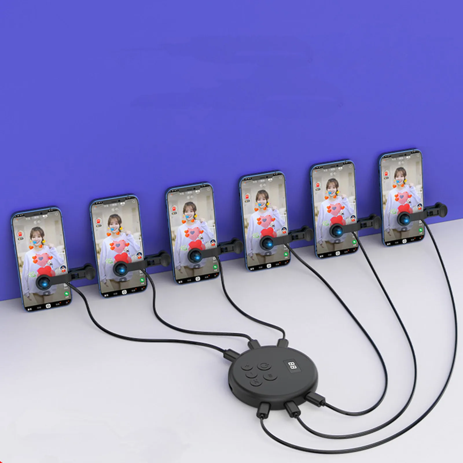 1 arrastre 6 diseños, 6 dispositivos conectados directamente. 6 cabezales de clic para hacer clic al mismo tiempo, como, tomar pedidos, jugar juegos, transmisión en vivo simultáneamente, soporte de uso mientras se carga, Y funciona las 24 horas del día.
