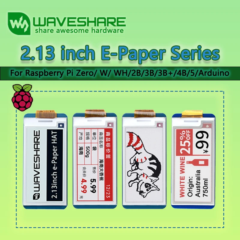 Comprar Pantalla Waveshare de tinta electrónica de 2,13 pulgadas para Raspberry Pi Zero/W/2B/3B/4B/5/Arduino 250x122SPI pantalla cruda de bajo consumo de energía opcional