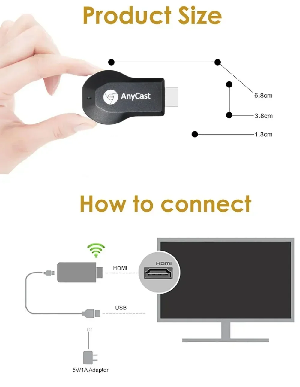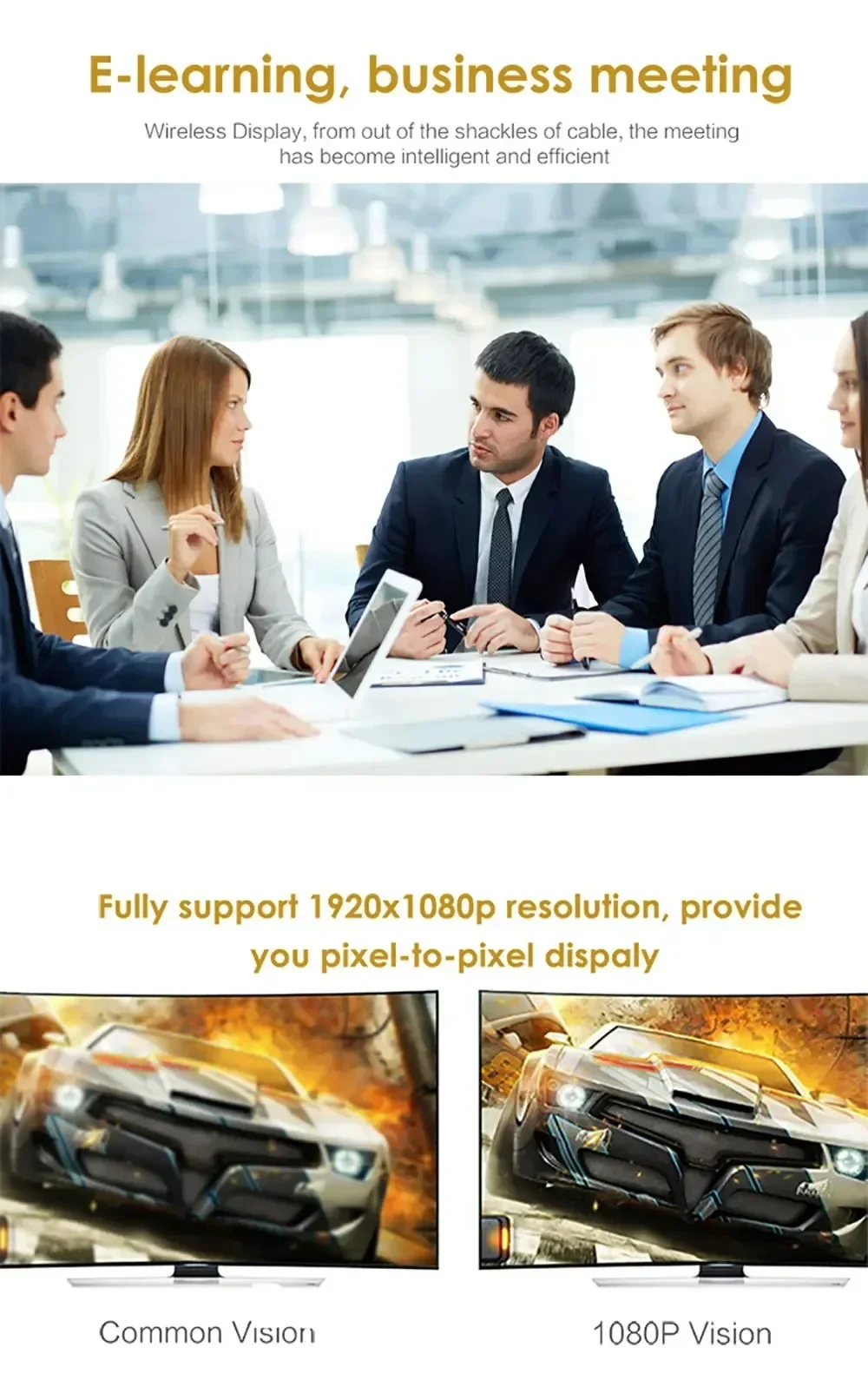 No es necesario instalar la aplicación y admite el interruptor de un botón, es fácil y conveniente de operar.Consumo de energía ultrabajo y bajo calor.Con diseño portátil compacto para facilitar su transporte.Soporte para sistema operativo IOS/Android/Windows/Mac.Excelente uso compartido y rendimiento para sus videos, Excel, PPT, PDF y otros archivos.Apto para proyectores, smartphones.Tabletas, portátiles, ultrabooks, etc.Descripción:Tipo de artículo: Receptor Dongle de pantallaConectores: compatible con HDMI, USBCapacidad de decodificación: 1080P (Full-HD)Sistema operativo: para AndroidTipo: Alta definición