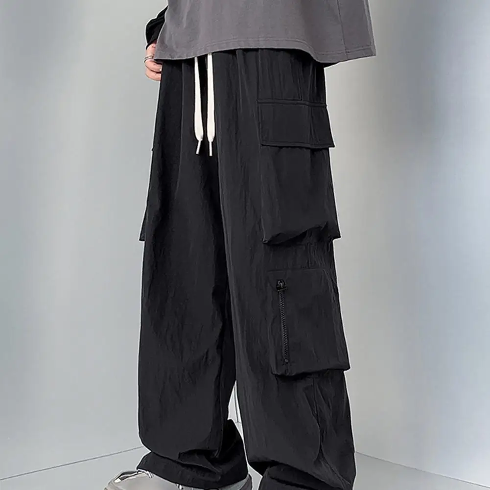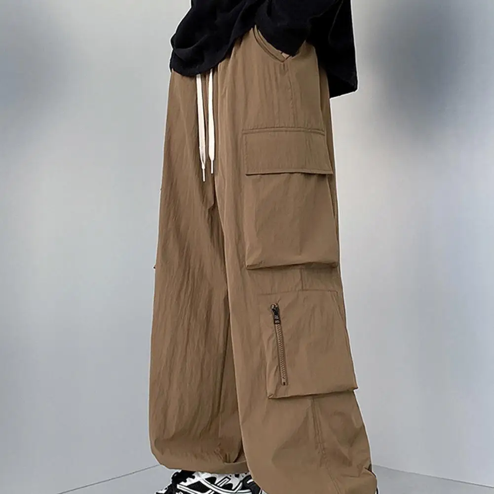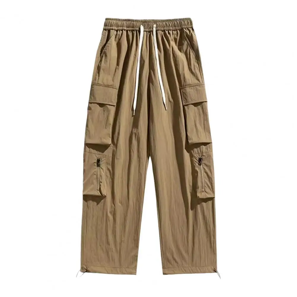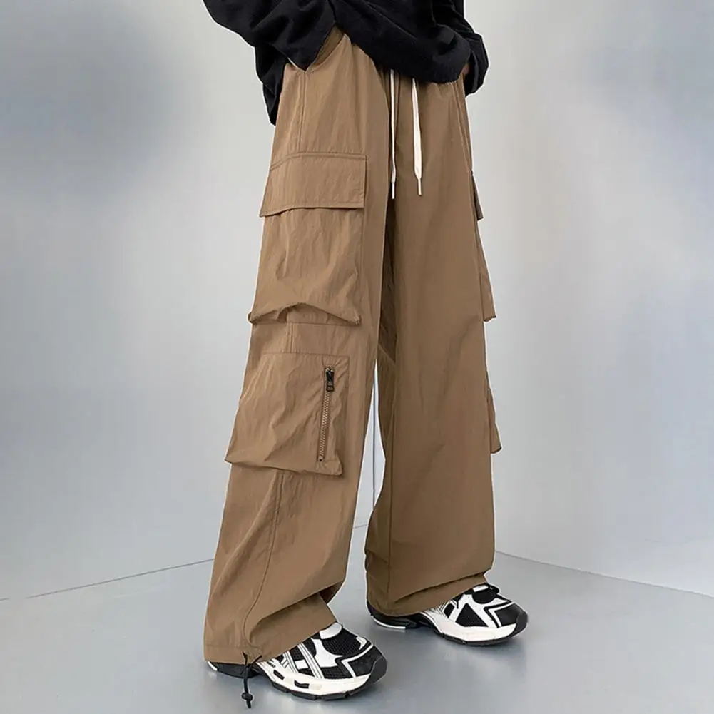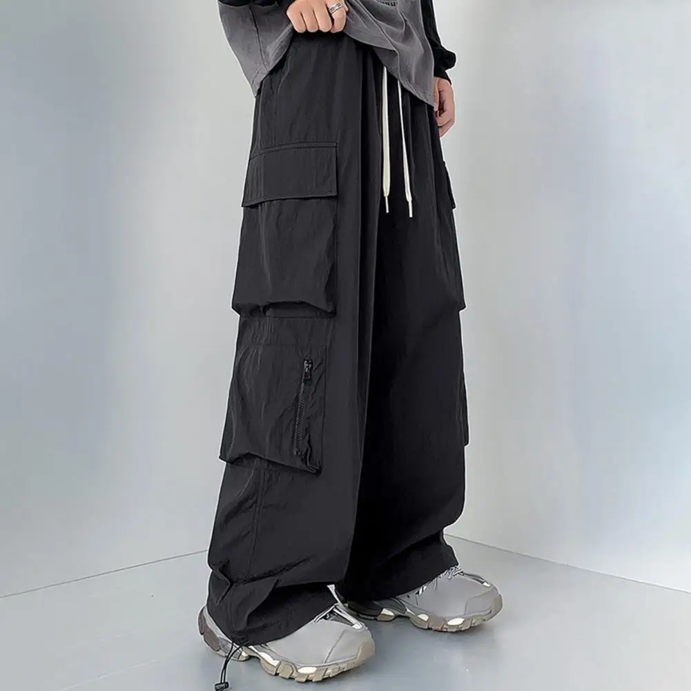 Pantalones de bolsillo reforzados para hombre, pantalones Cargo estilo Hip Hop para hombre con cordón en la cintura, múltiples bolsillos para viajes al aire libre, ropa de calle