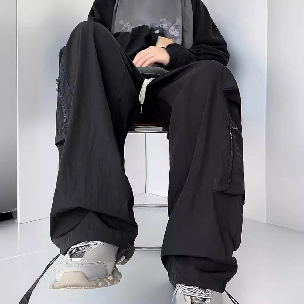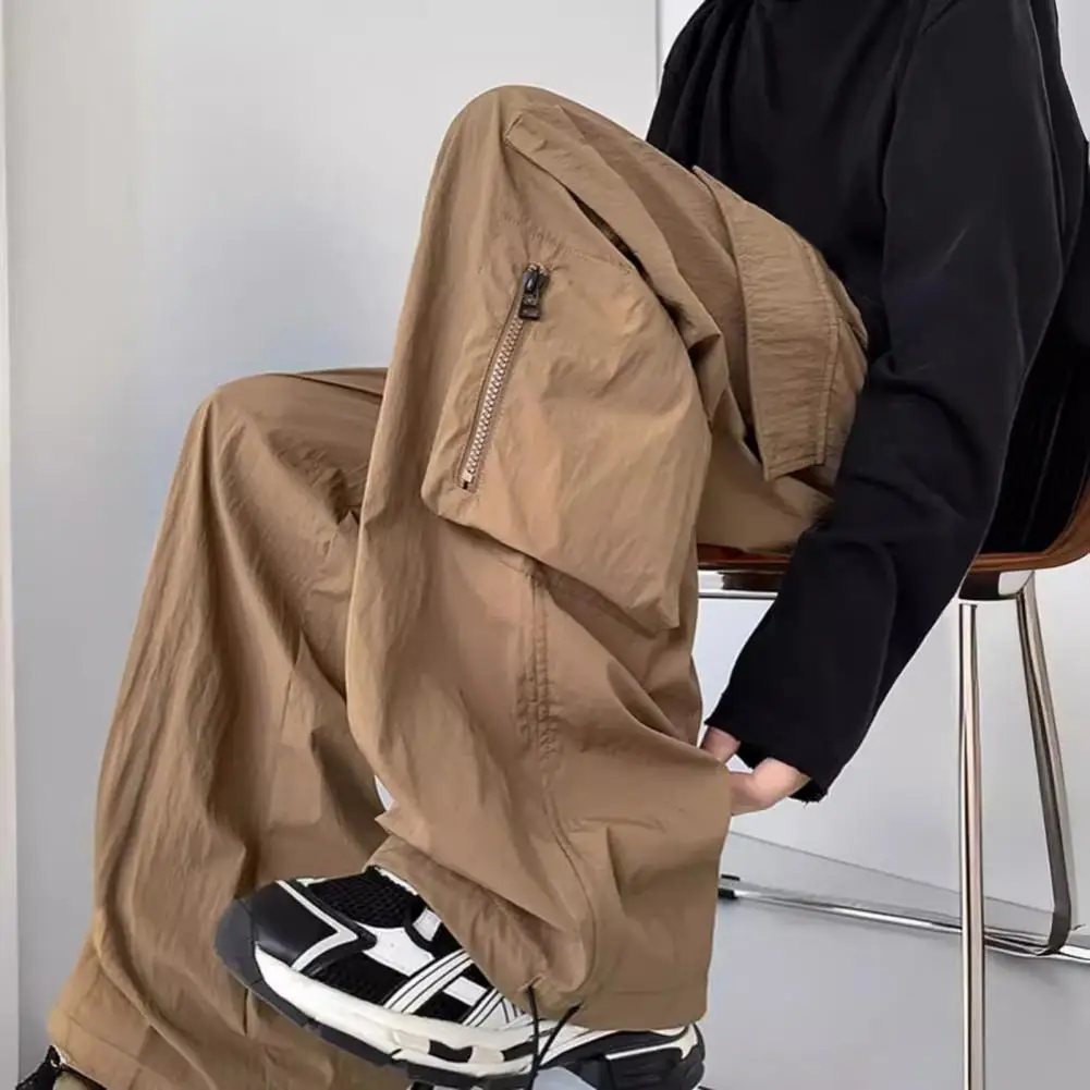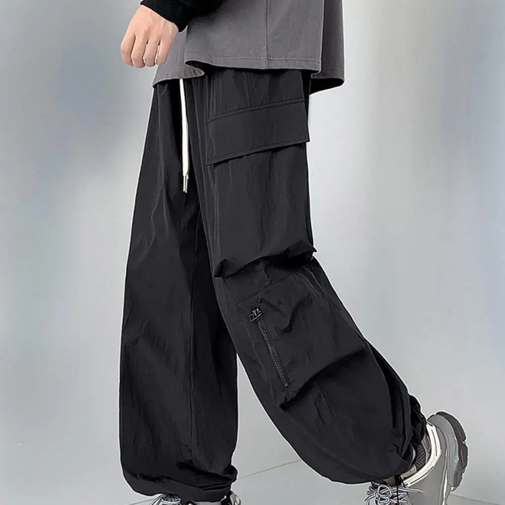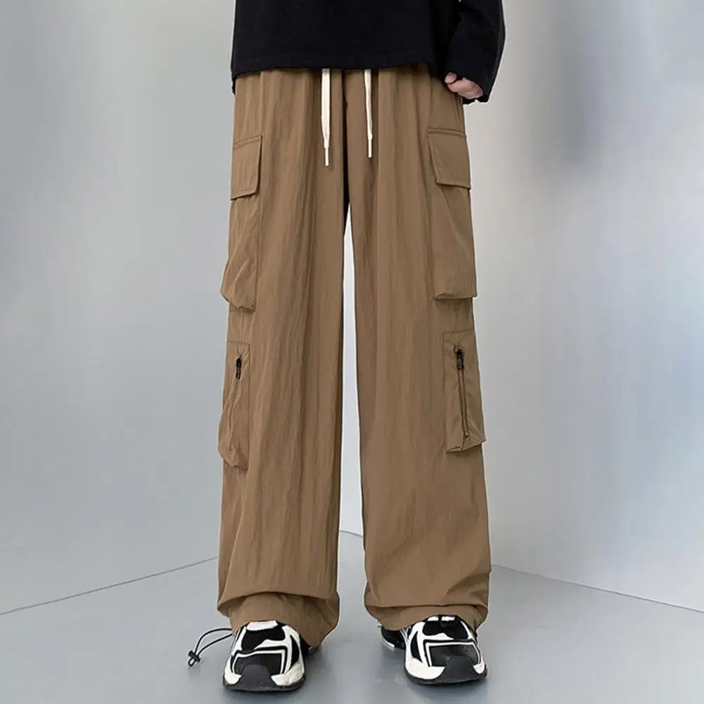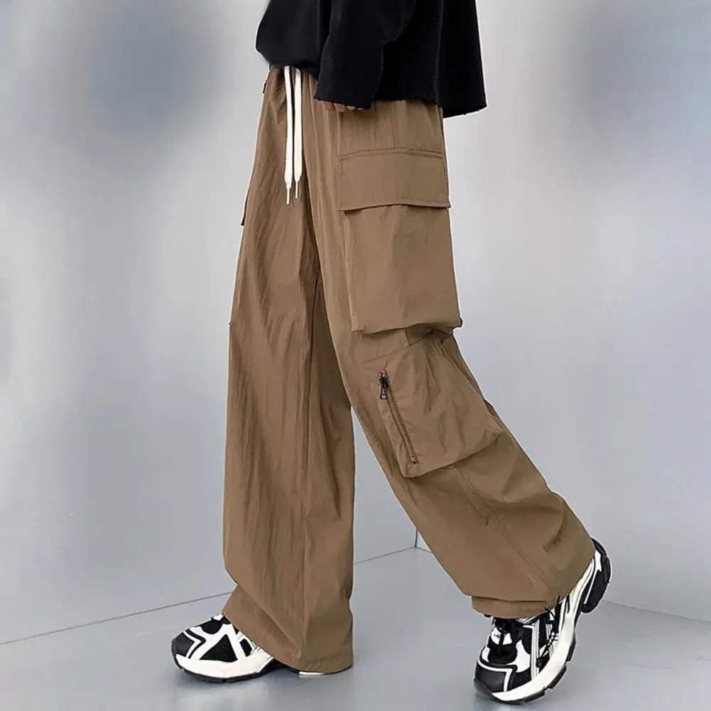 Pantalones de bolsillo reforzados para hombre, pantalones Cargo estilo Hip Hop para hombre con cordón en la cintura, múltiples bolsillos para viajes al aire libre, ropa de calle