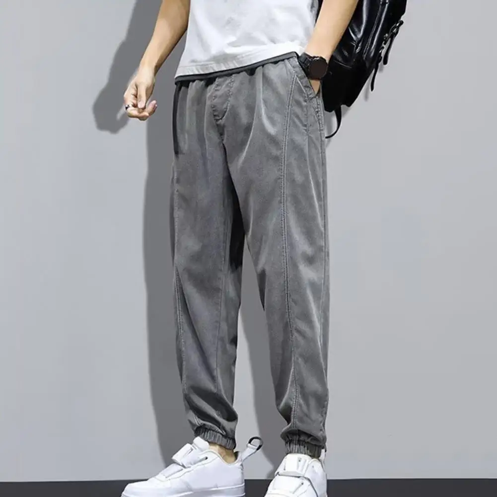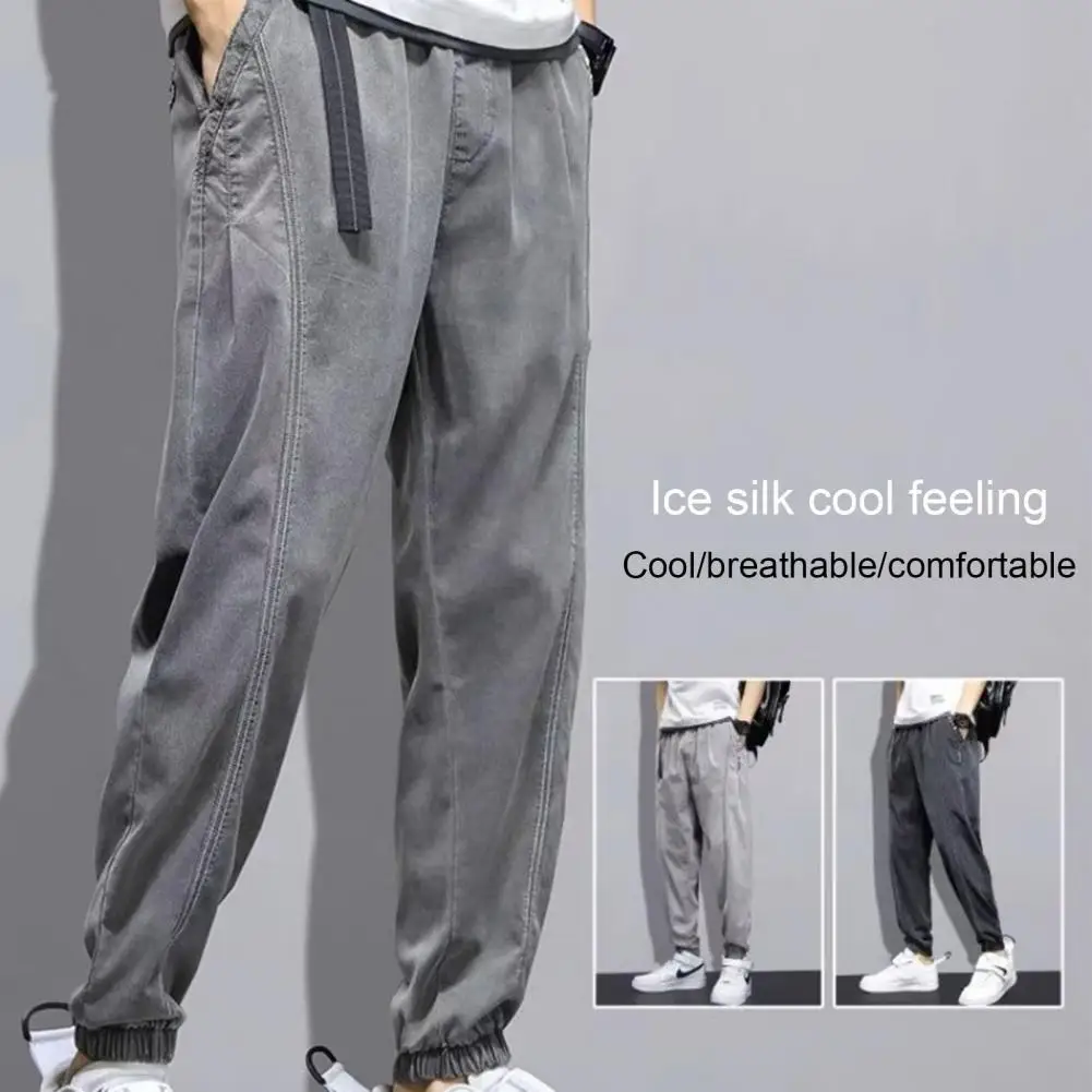 Pantalones Harem de Seda de Hielo, Pantalones Transpirables de Color Liso, Cintura Elástica Suave con Bolsillos para Actividades al Aire Libre, Color Liso