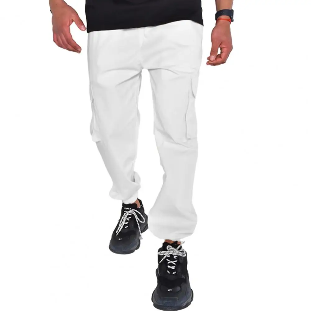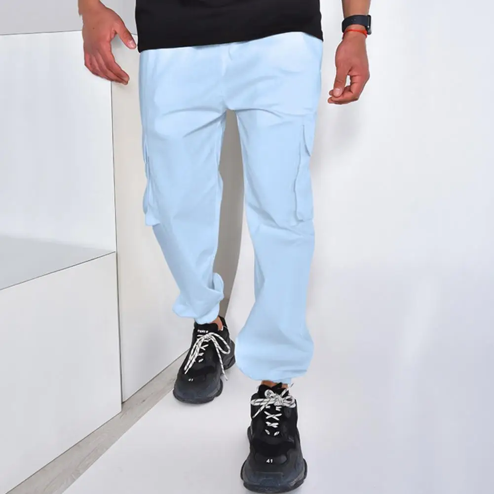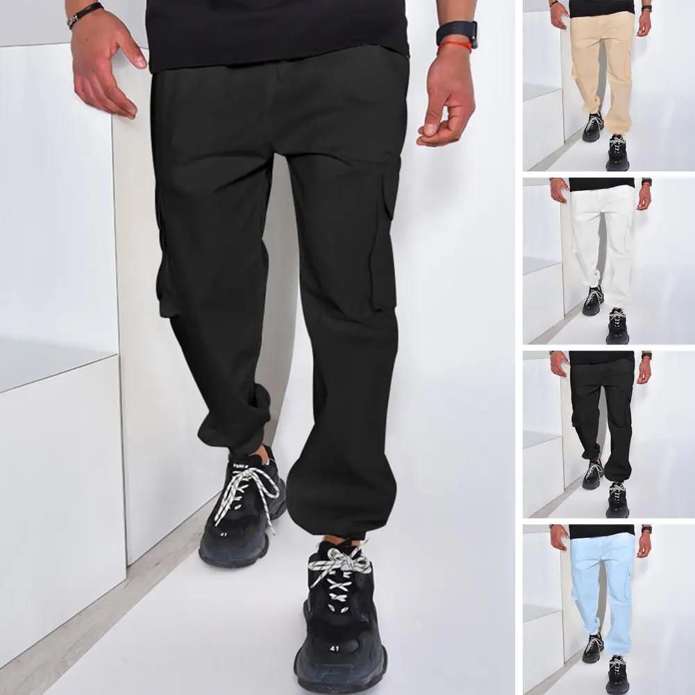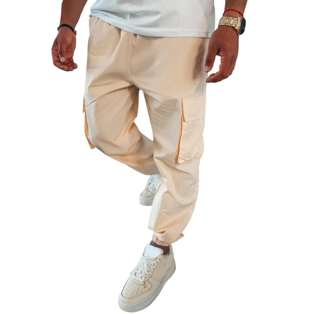 Pantalones Cargo versátiles para hombre, pantalones Cargo con cordón elástico en la cintura, múltiples bolsillos, ropa de calle transpirable suave, pantalones con cordón