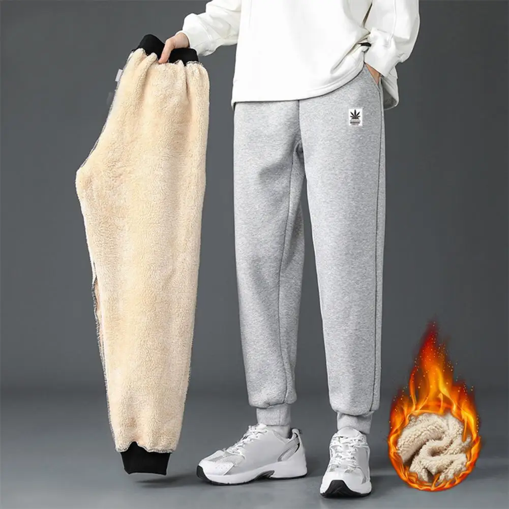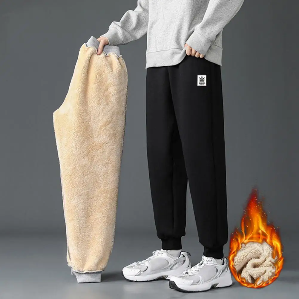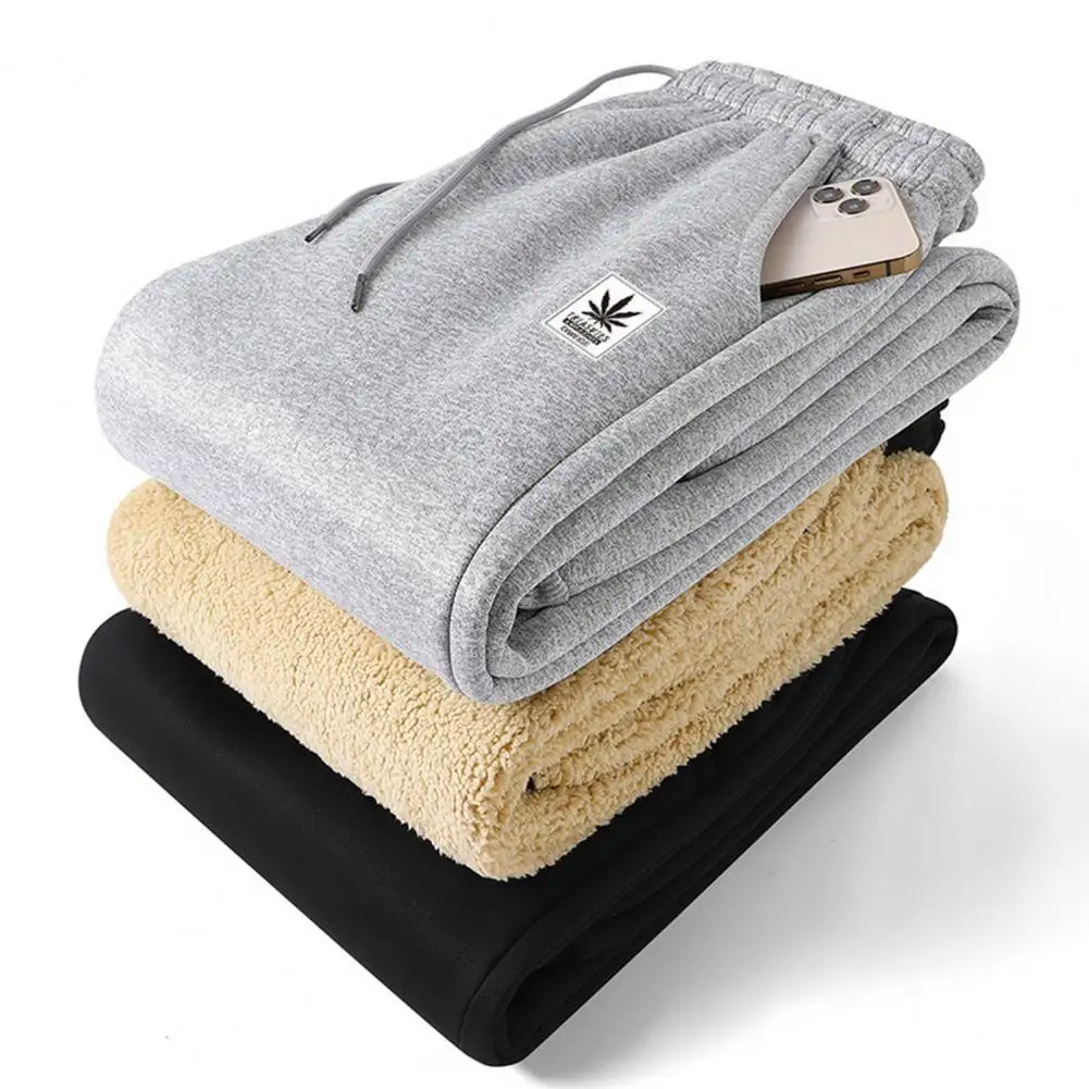 Pantalones cálidos de invierno, pantalones de chándal gruesos con cordón de felpa para hombre con cintura elástica, bolsillos cálidos para otoño e invierno, largos resistentes al frío