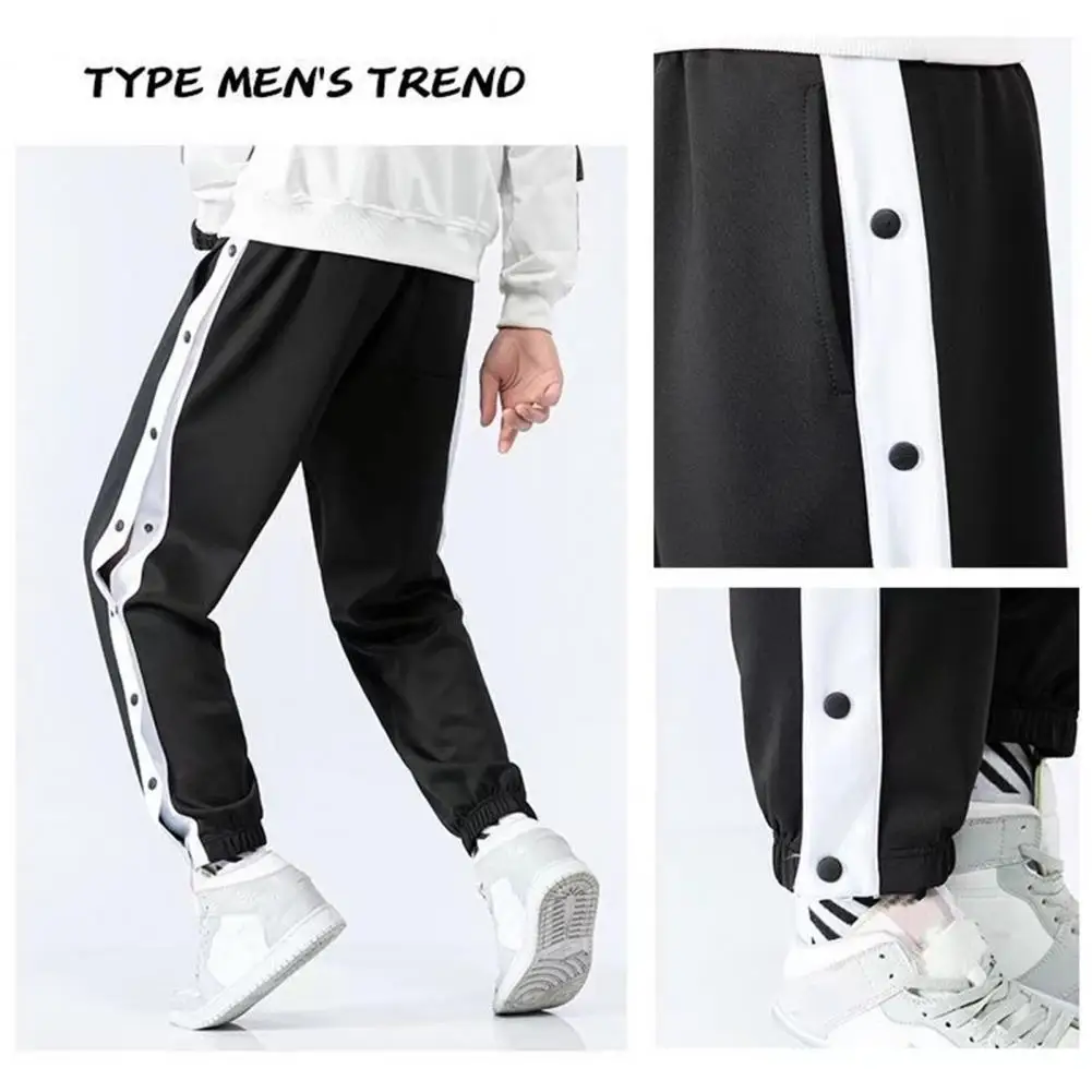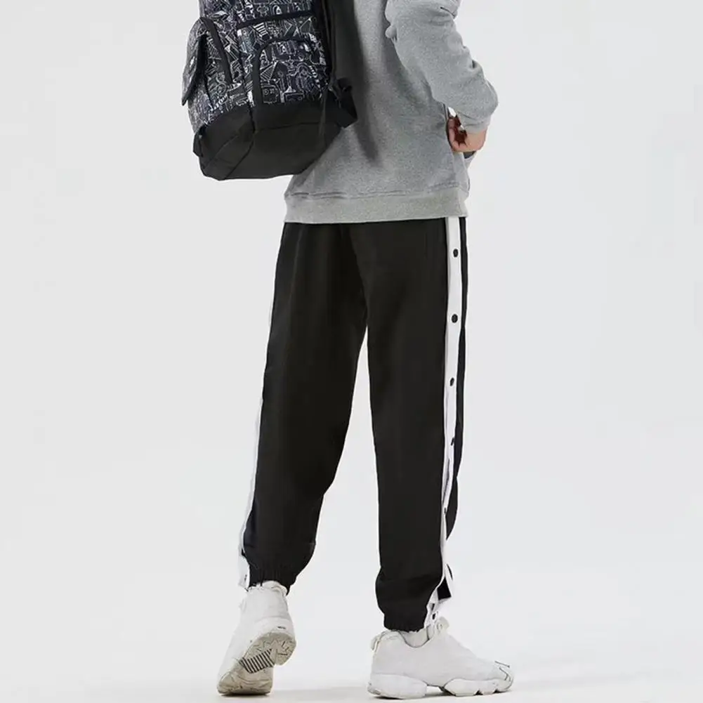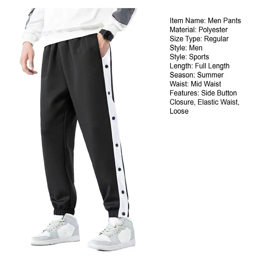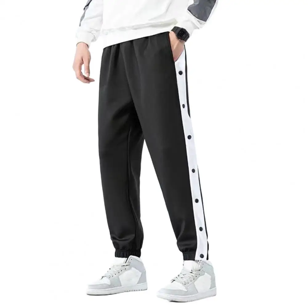 Pantalones con cordón para hombre, pantalones deportivos holgados con cierre de botón lateral, cintura elástica para entrenamiento de gimnasia, jogging para hombre