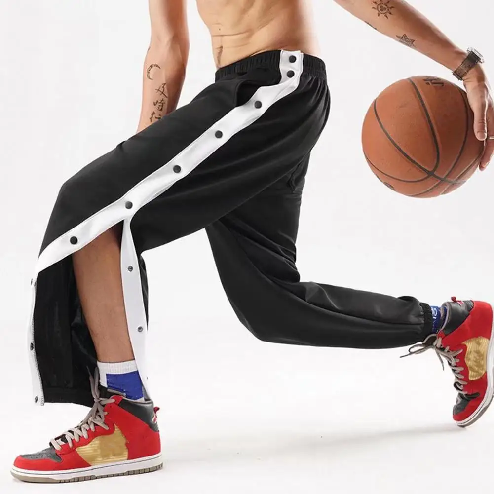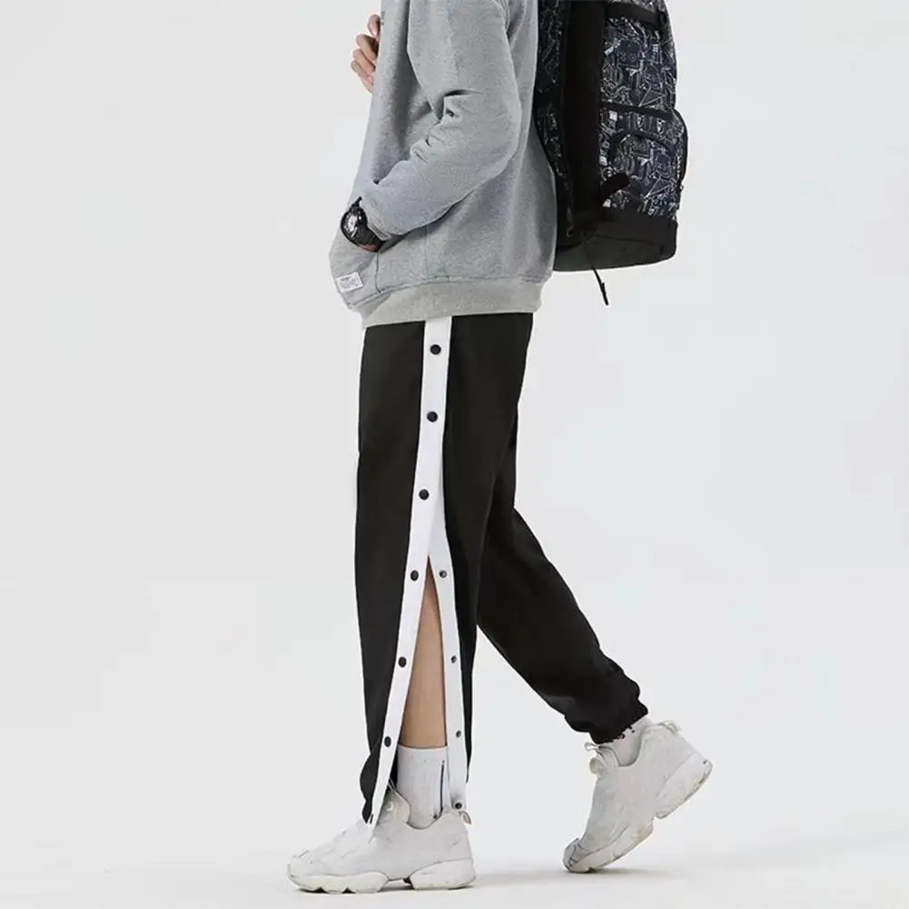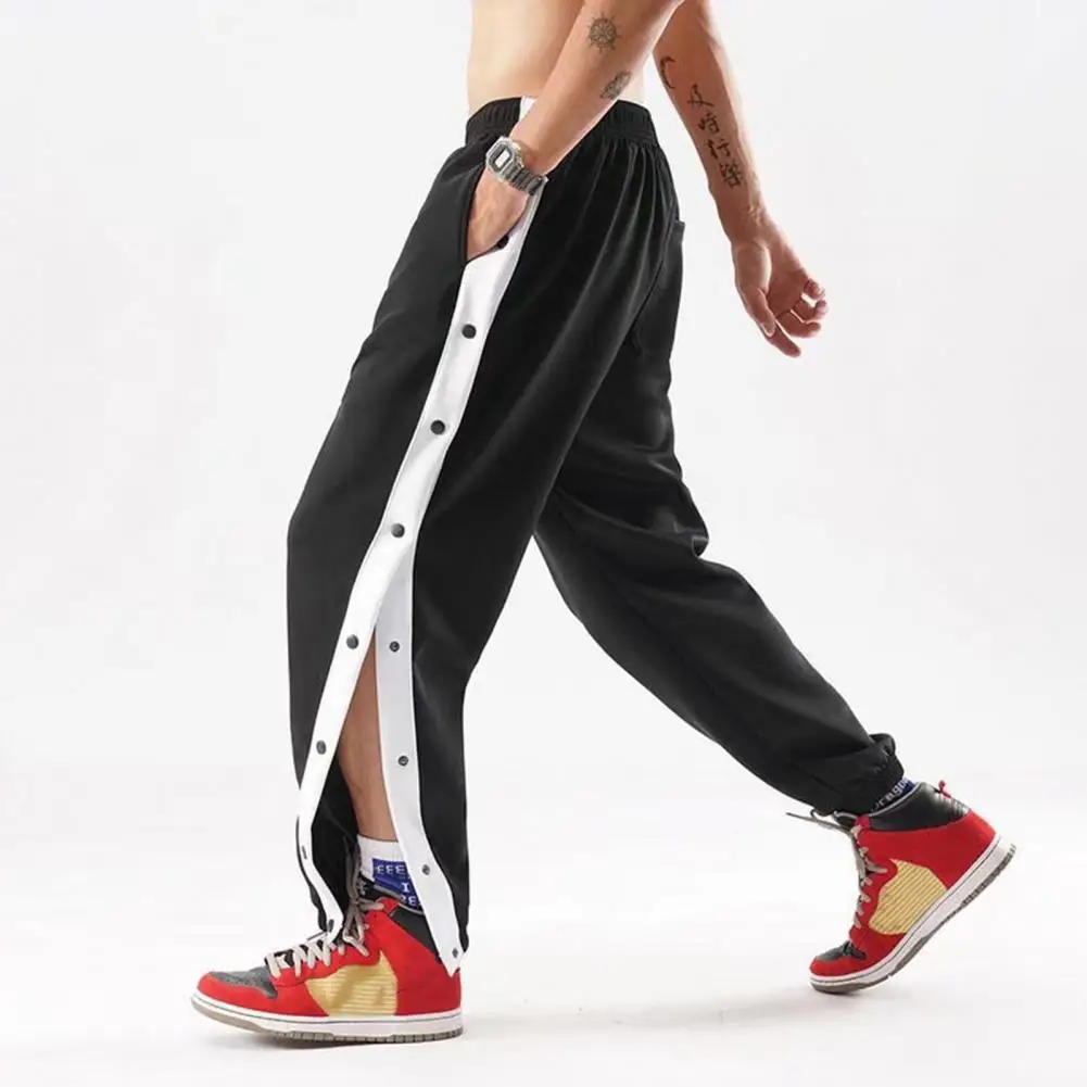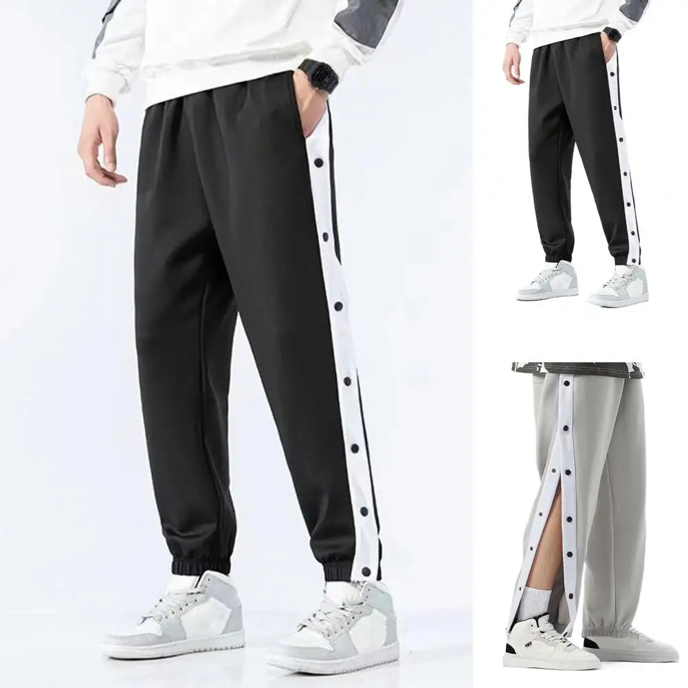 Pantalones con cordón para hombre, pantalones deportivos holgados con cierre de botón lateral, cintura elástica para entrenamiento de gimnasia, jogging para hombre