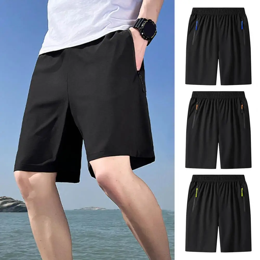 Pantalones cortos para correr para hombre, pantalones cortos de gimnasio de secado rápido con cintura elástica, bolsillos con cremallera para correr, entrenamiento, deportes ligeros para hombres