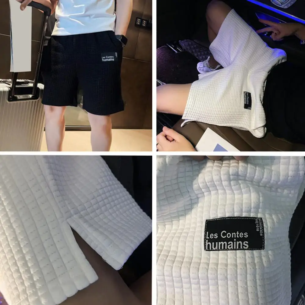 Elegantes pantalones cortos de gofres para hombre con un diseño de letras de moda.