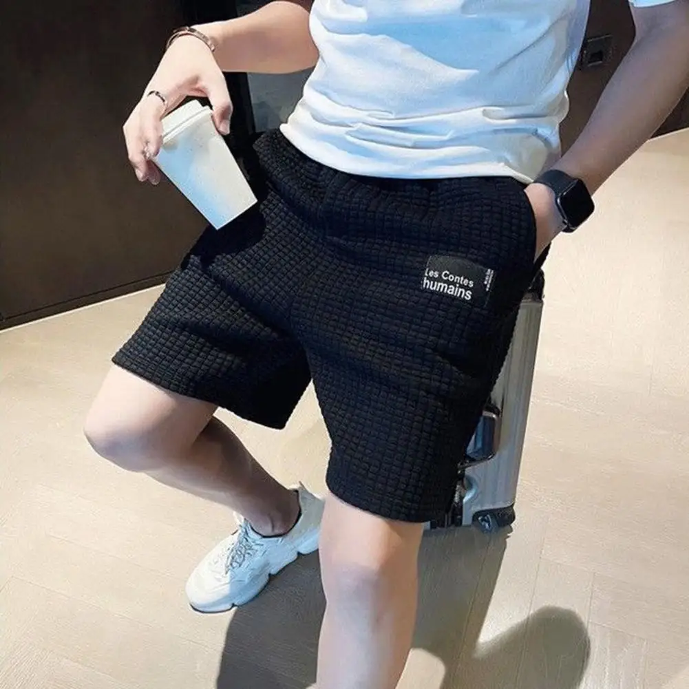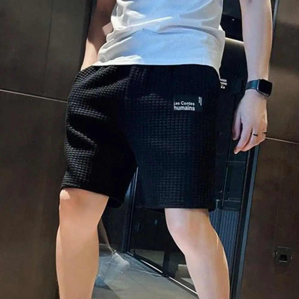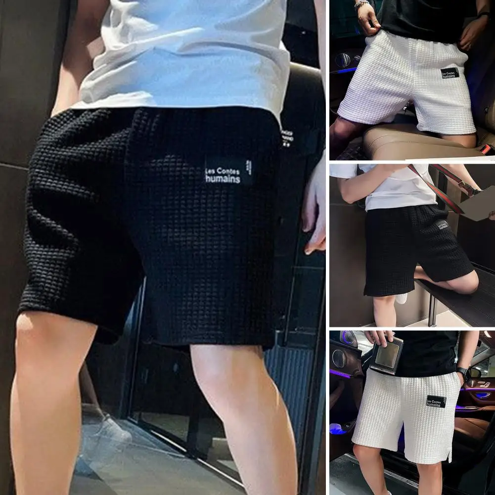 Elegantes pantalones cortos de gofres para hombre con un diseño de letras de moda.