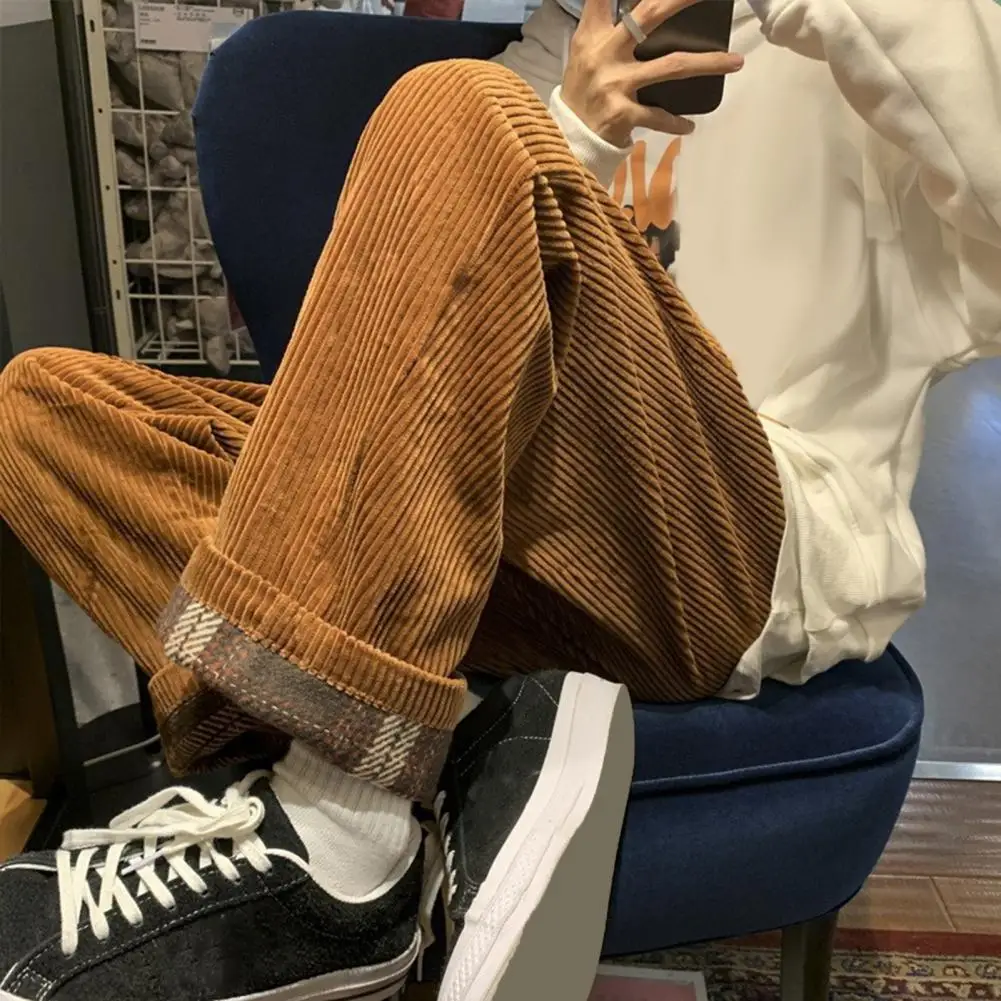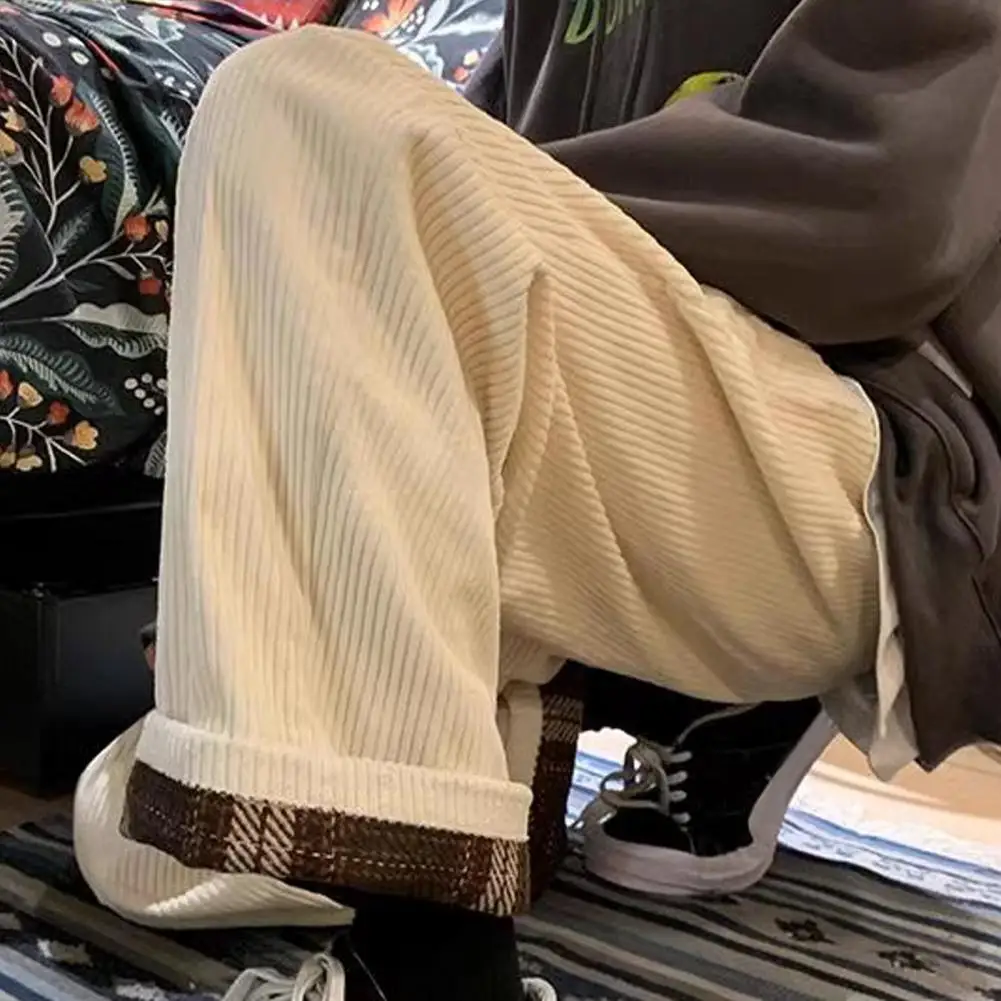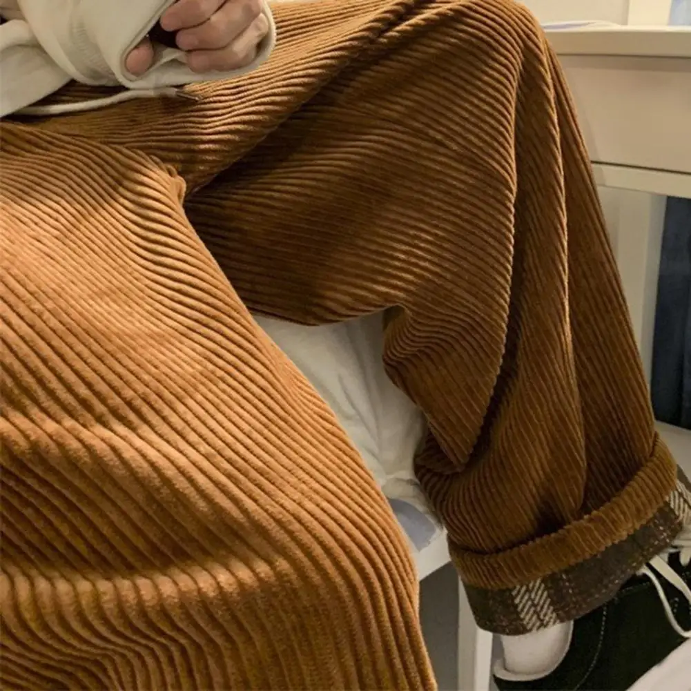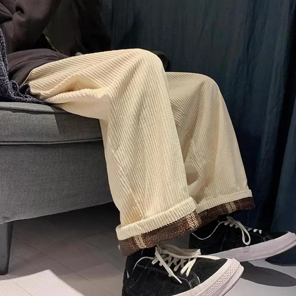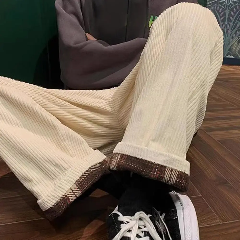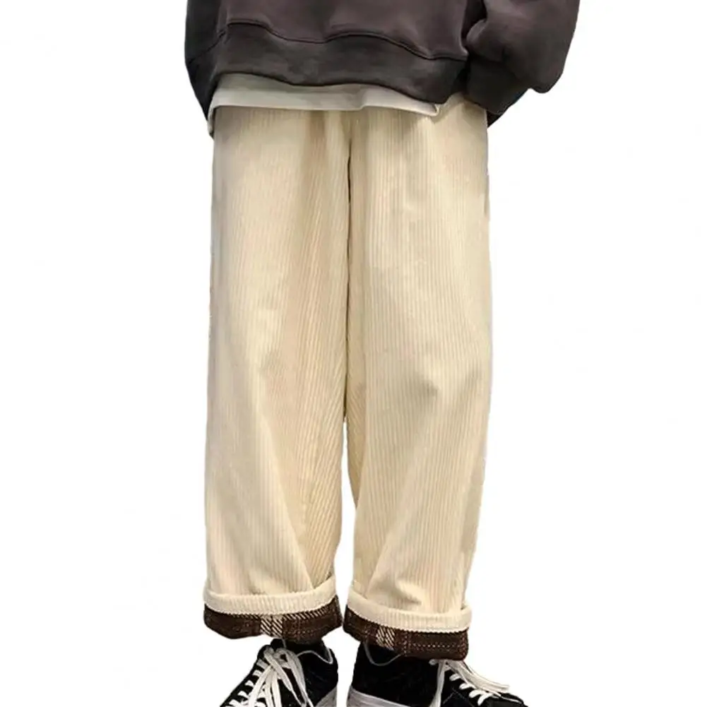 Pantalones casuales de felpa gruesa para hombre, pantalones Cargo con cordón en la cintura, pierna ancha, Material suave y cálido para actividades al aire libre para hombres