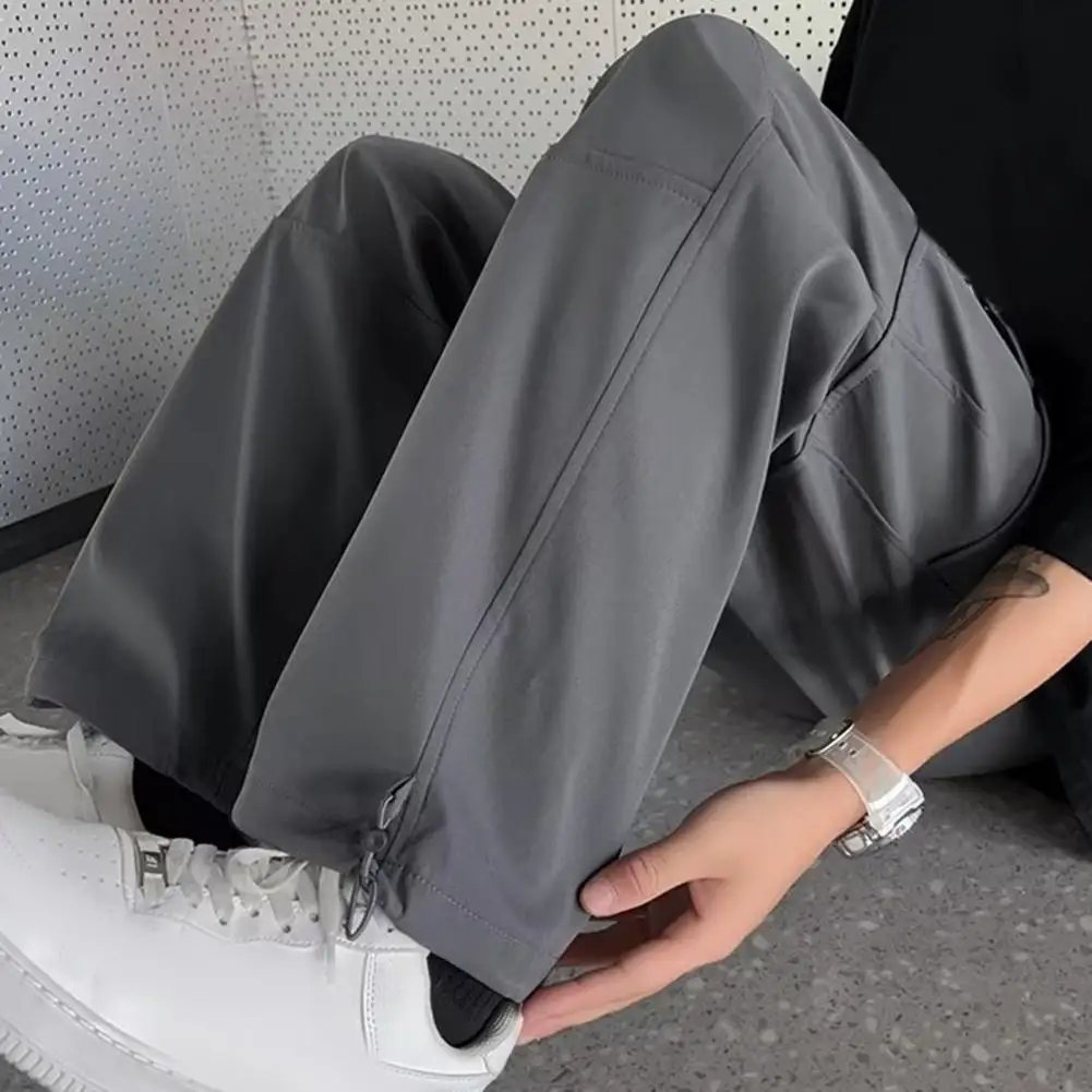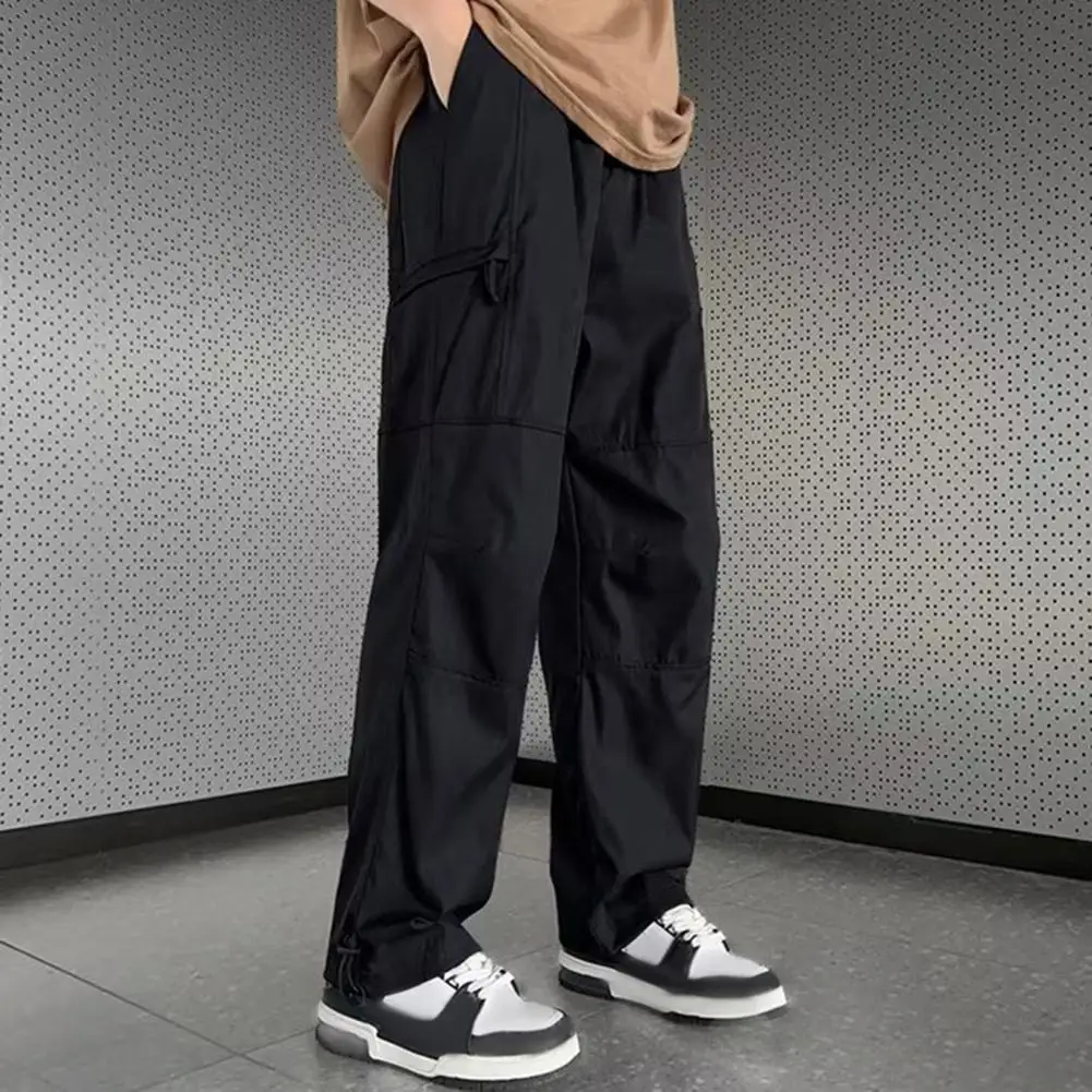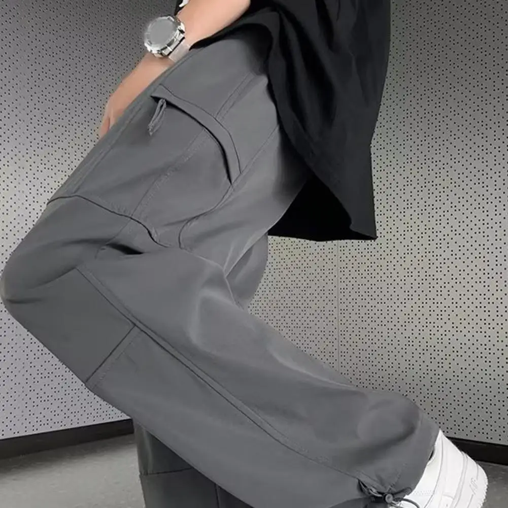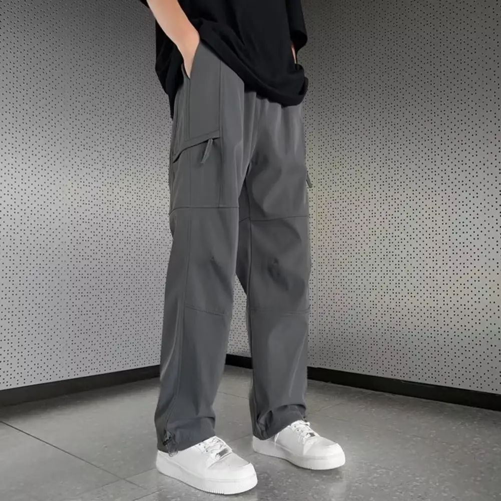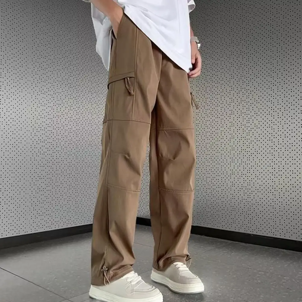 Comprar Pantalones de trabajo para hombre, ropa de calle de pierna ancha con múltiples bolsillos, tela suave y transpirable, estilo Casual cómodo, Cargo