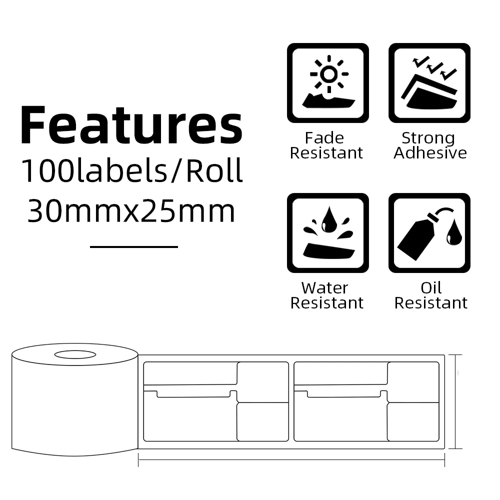 Comprar Papel adhesivo para etiquetas de joyería, rollo de papel térmico para impresora Phomemo M110/M200, 30x25 + 45mm, 100 piezas