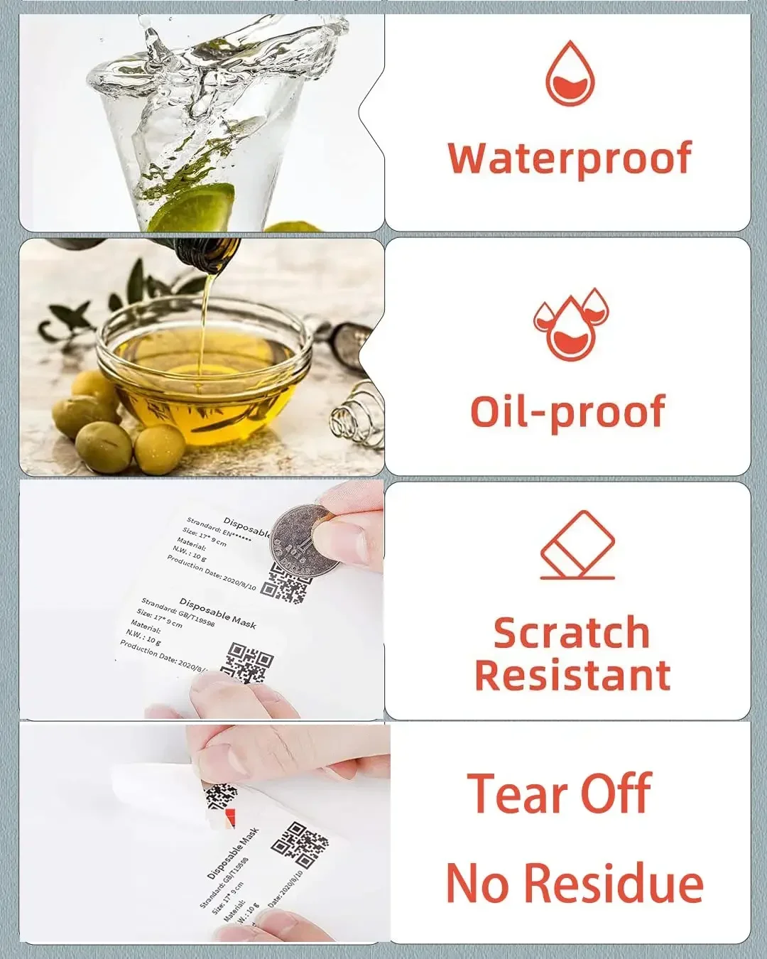 Impermeable, a prueba de aceite, a prueba de desgarros, gran adhesivo y sin dejar rastro
