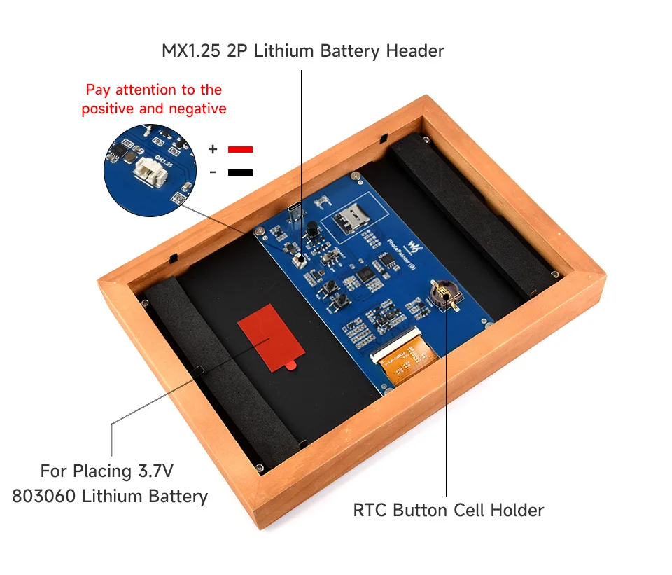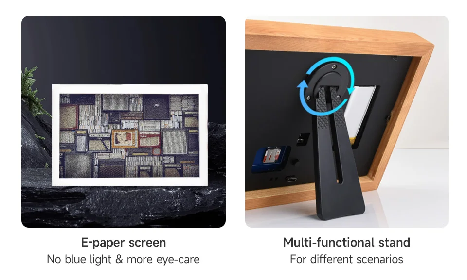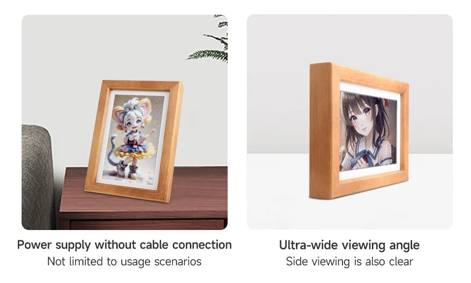 Papel electrónico E6 a todo color de 7,3 pulgadas con marco de fotos de madera maciza, modo de espera ultralargo, resolución de 800 × 480, baterías opcionales