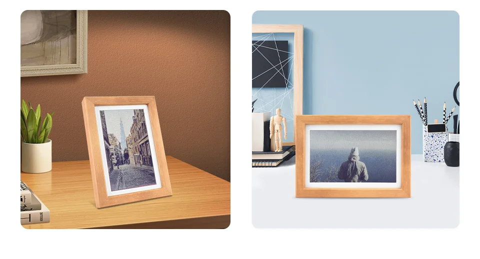 Adopta tecnología E6 a todo color, con marco de fotos de madera maciza