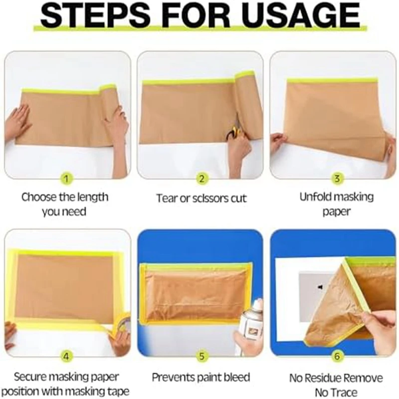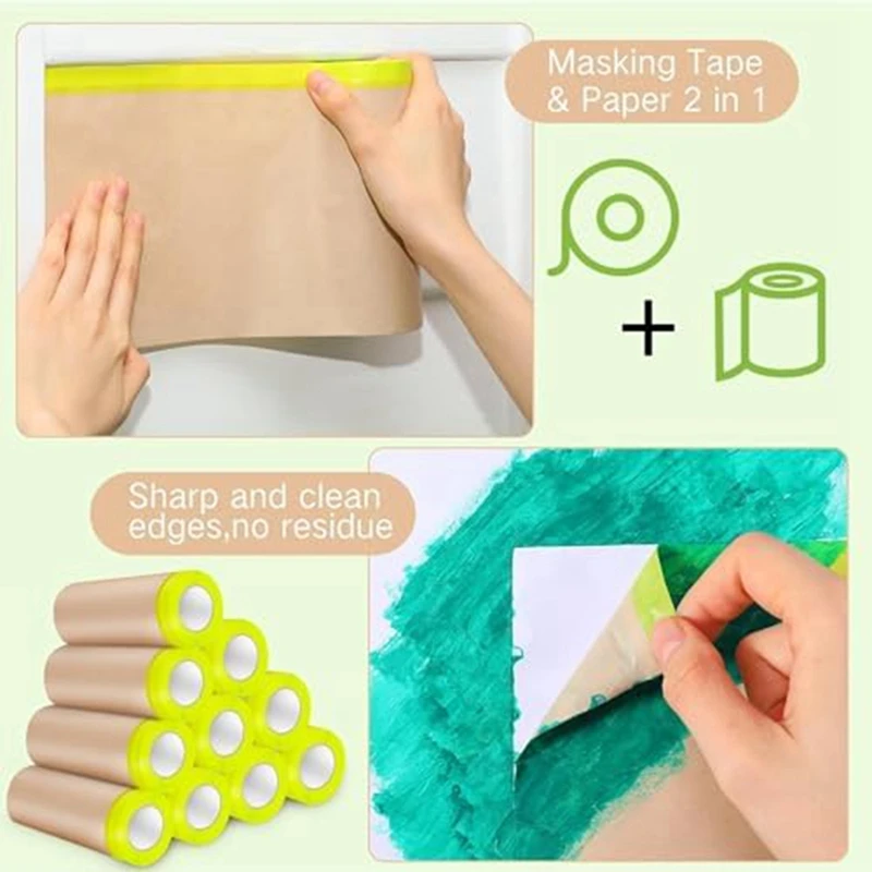 FÁCIL DE APLICAR: nuestros papeles de enmascarar adhesivos son súper fáciles de aplicar, enrollar y pegar y luego dejar caer, fácil de despegar a mano, sin tijeras, enmascarar a mano, se requiere cinta de pintor o herramientas maestras de enmascaramiento, pero aún puede trabajar con la película de enmascarar Úselo con el dispensador.