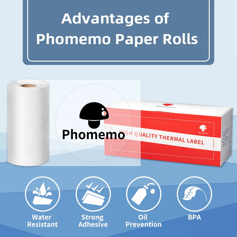 Comprar Papel de etiquetas autoadhesivas Phomemo para impresora de etiquetas autoadhesiva Phomemo M110/M200, etiqueta impermeable, etiqueta de joyería, pegatina térmica