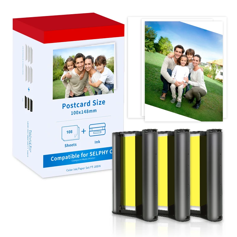 Comprar Papel fotográfico Selphy KP-108 caja de tinta KP108 para Canon Selphy Compatible CP1500 CP1300 CP1200 CP910 CP900 impresora fotográfica de 6 pulgadas