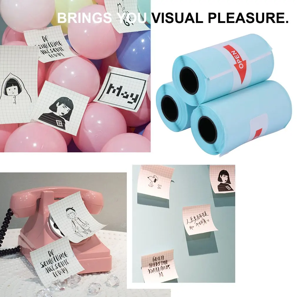 Comprar Papel de impresión con etiqueta adhesiva, papel fotográfico de Color para impresora PeriPage, papel de impresión fotográfica, papel de recibo, 3 rollos