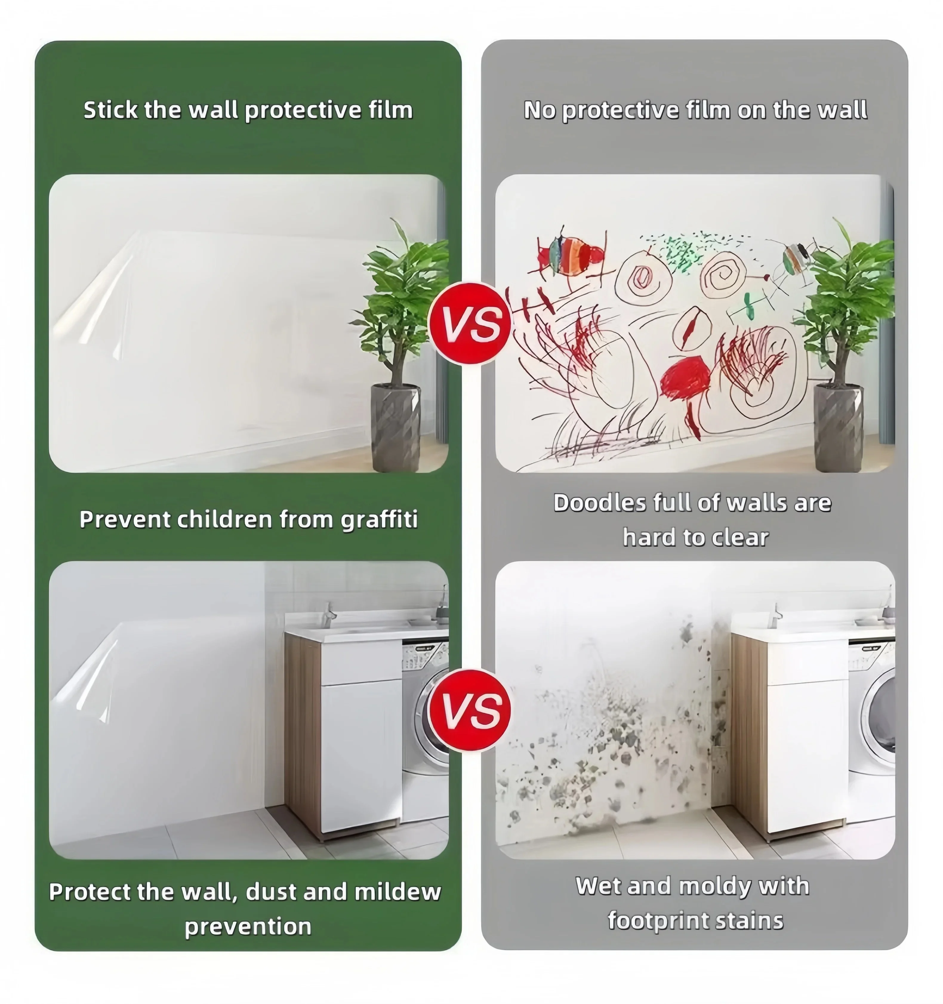 Protección invisible 100% transparente: El diseño cristalino combina perfectamente con las paredes, manteniendo la estética de su espacio mientras oculta suciedad, huellas o raspaduras.