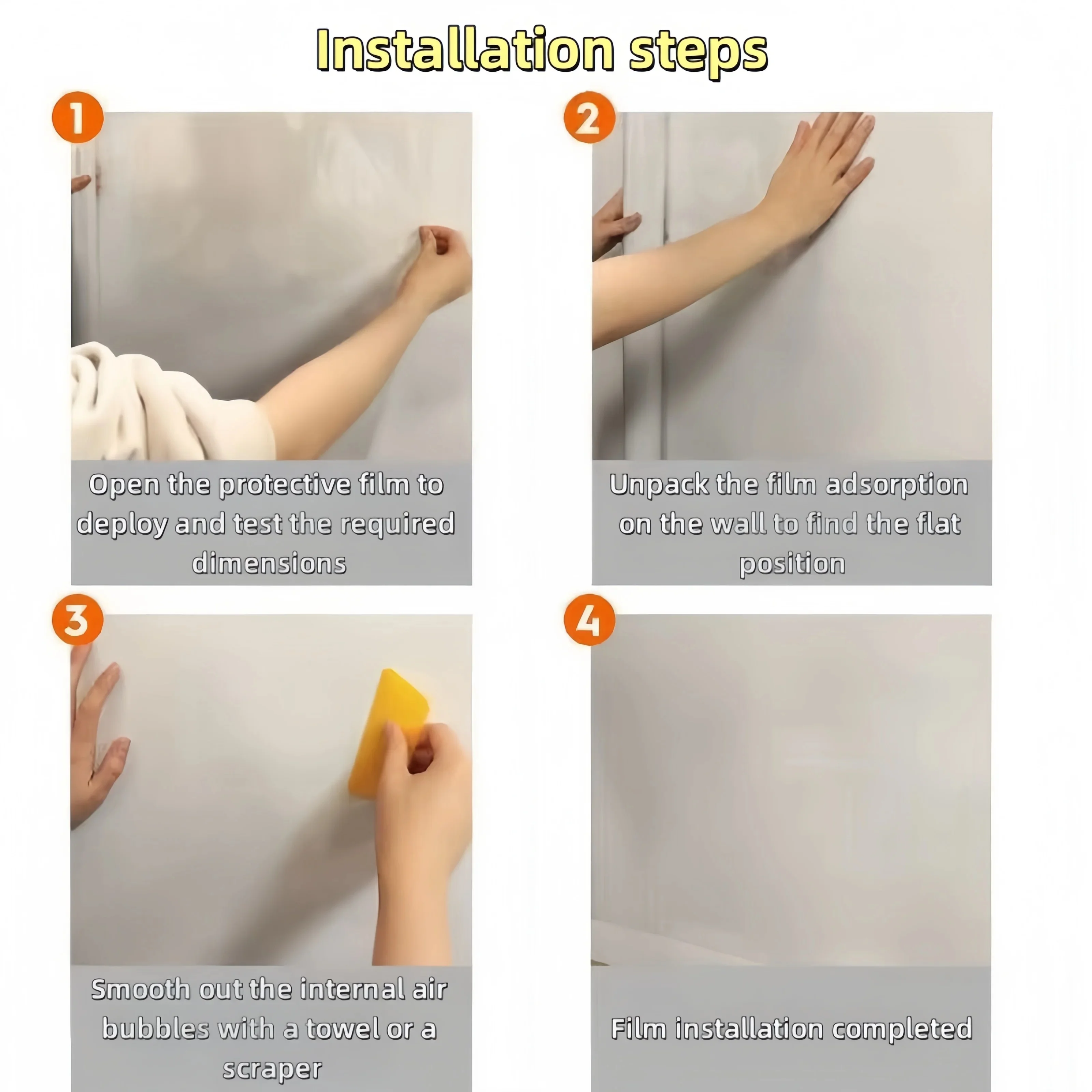 Fácil instalación: El proceso simple de 6 pasos (pared limpia → aplicar película → burbujas suaves) no requiere herramientas, lo que ahorra tiempo y esfuerzo.