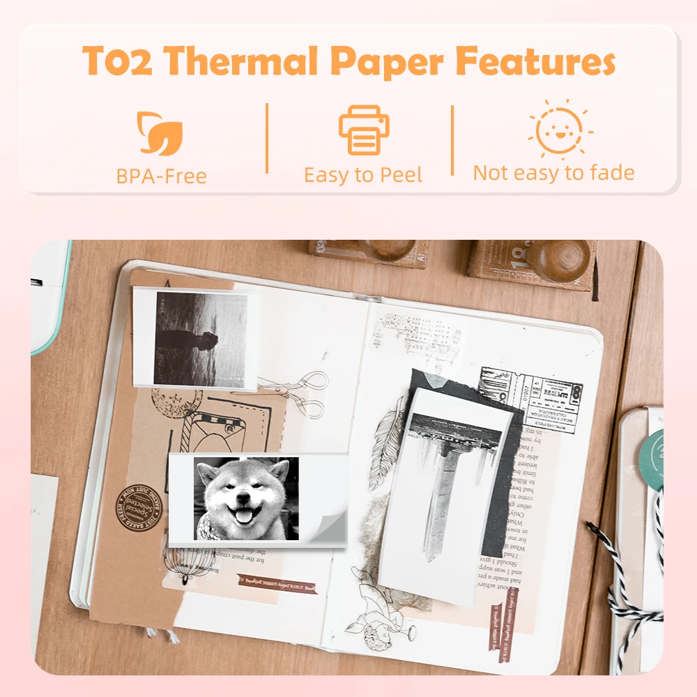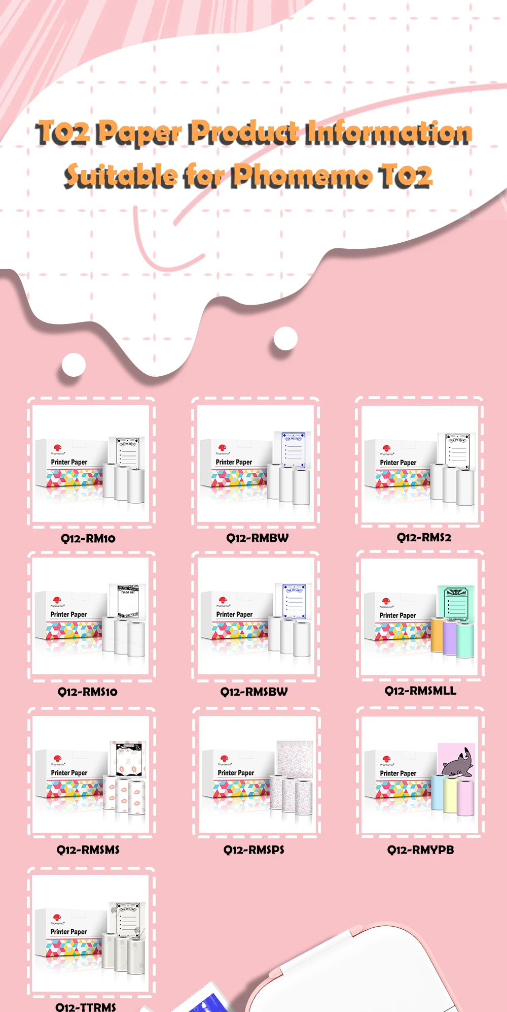 ✔Nombre del producto: Papel térmico/pegatina para impresora Phomemo T02/M02X
