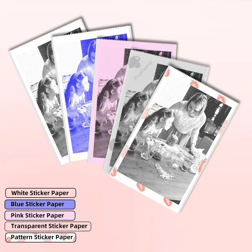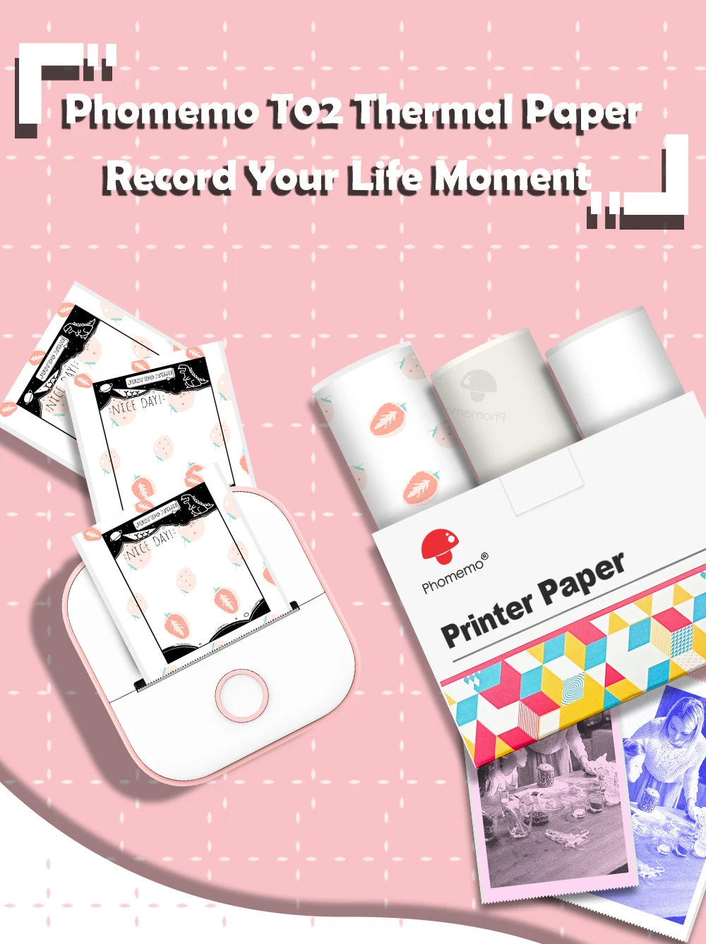 Comprar Papel térmico Phomemo para impresora portátil T02/M02X, etiquetas autoadhesivas, ajuste adhesivo, textos fotográficos DIY, notas de estudio, impresión de 53mm