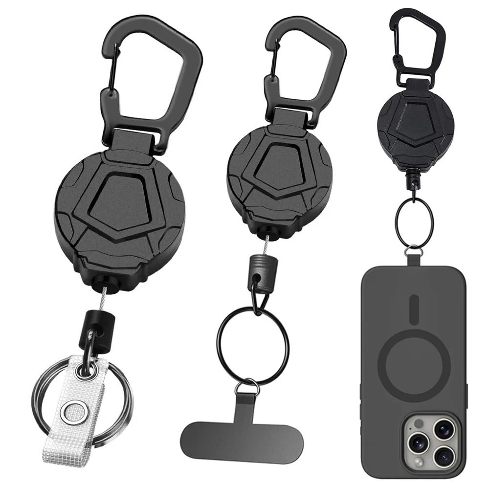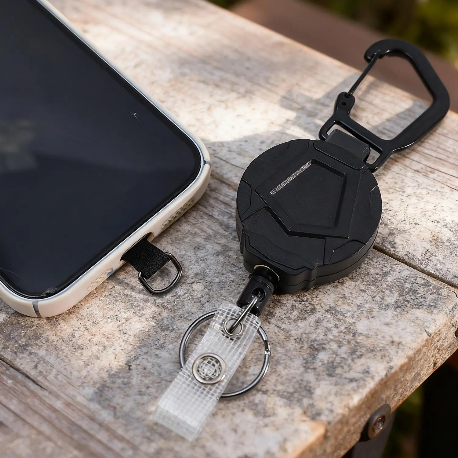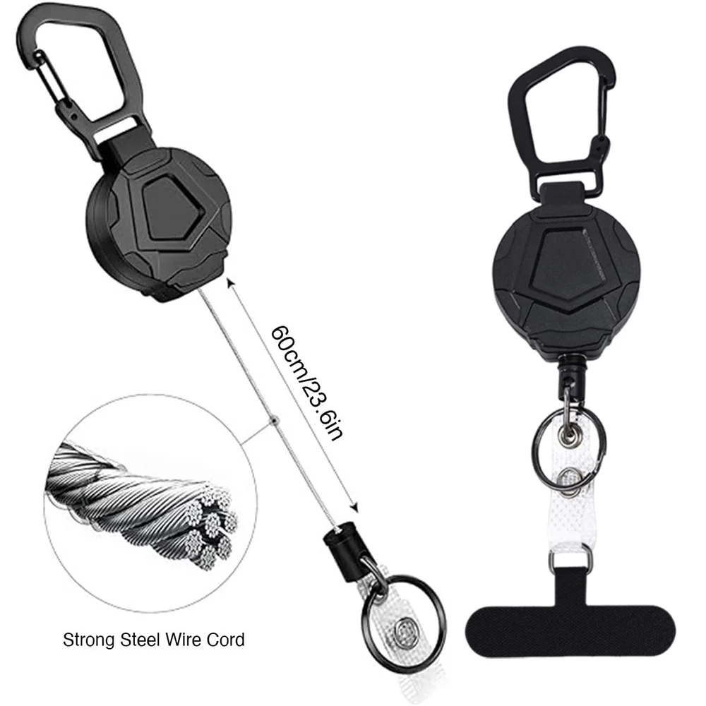 Paquete de 1-4 llaveros retráctiles, soporte de correa de carrete de tarjeta de identificación táctica resistente con cierre de Clip para teléfono, llavero de cable retráctil