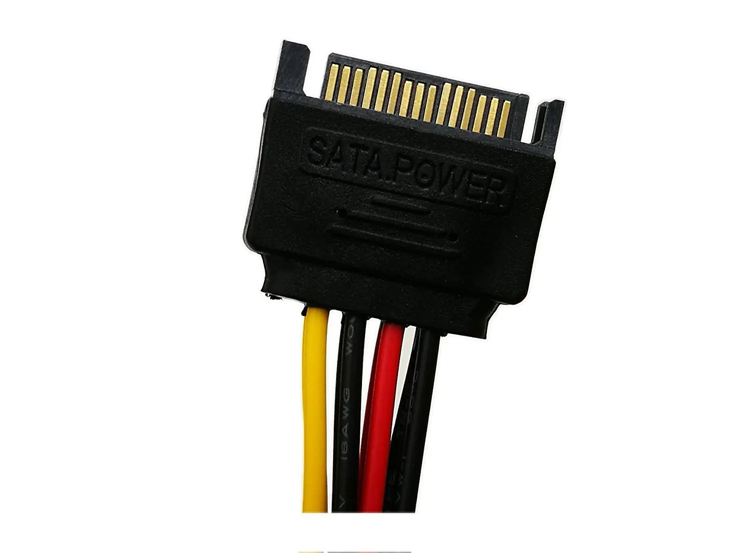 Detalles del conector: Conector de alimentación macho SATA de 1x15 pines, conector hembra Molex de 2x4 pines.
