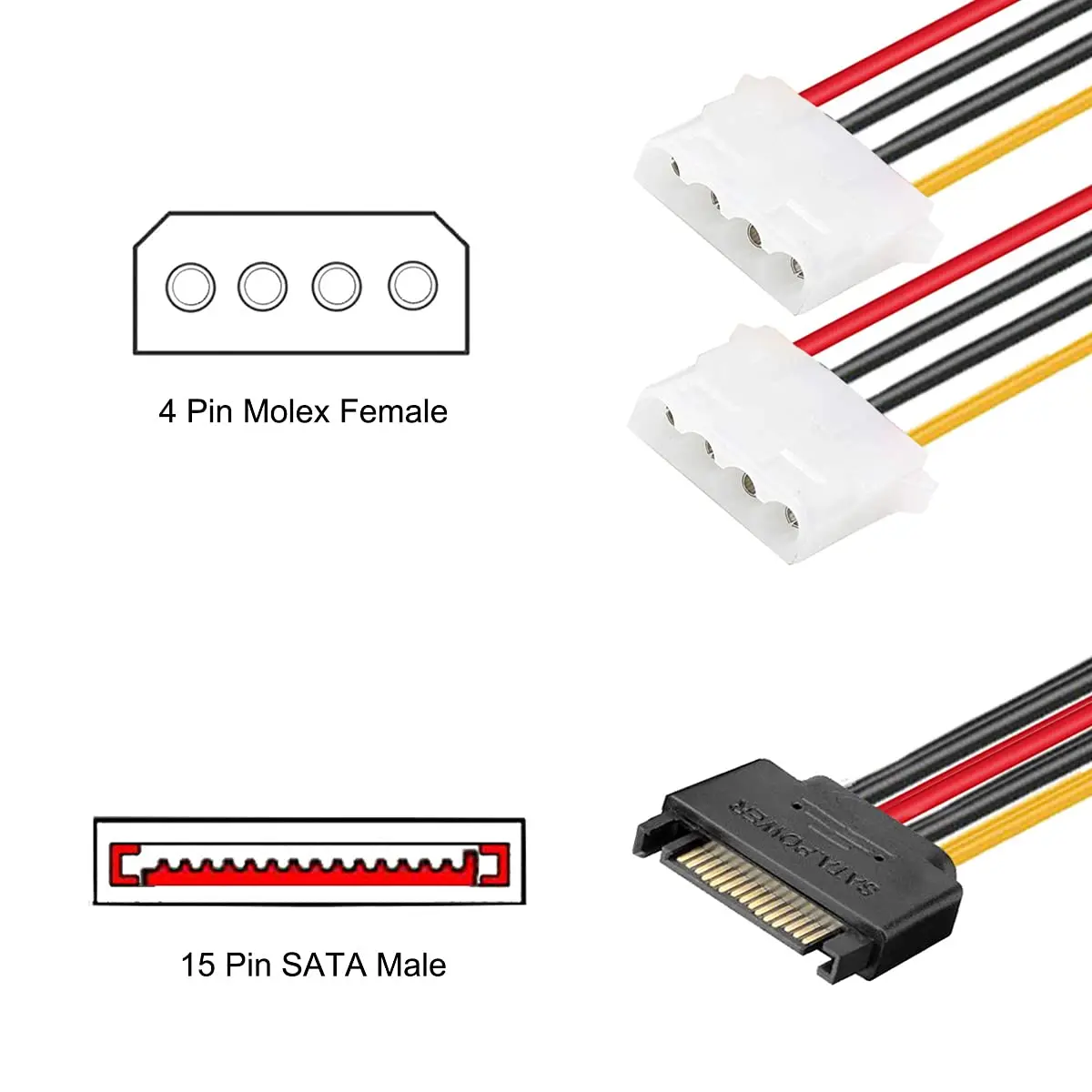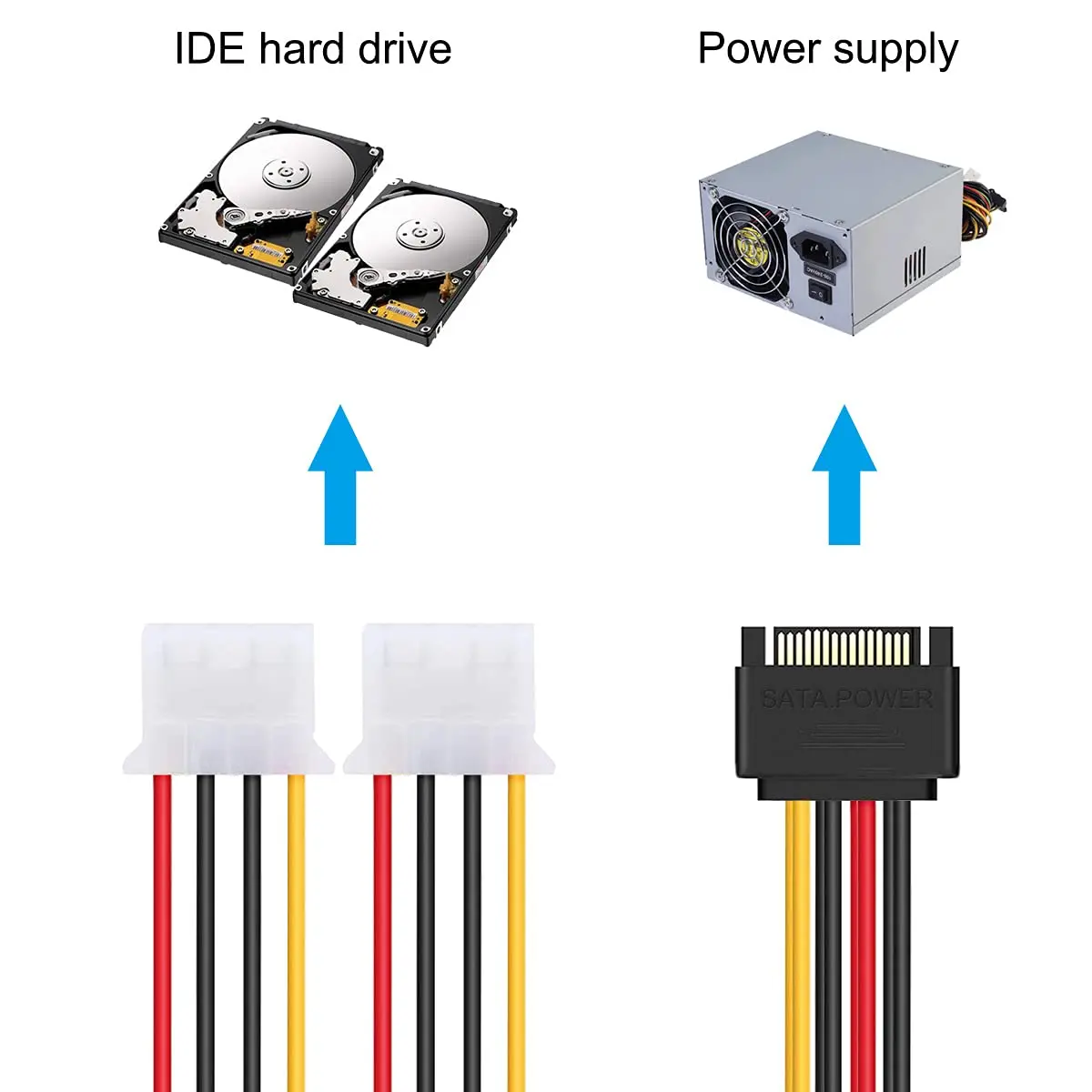 Comprar Paquete de 10 SATA a Dual Molex LP4, 15 pines SATA macho a 2x4 pines Molex IDE hembra Y divisor adaptador de Cable de alimentación para disco duro HDD
