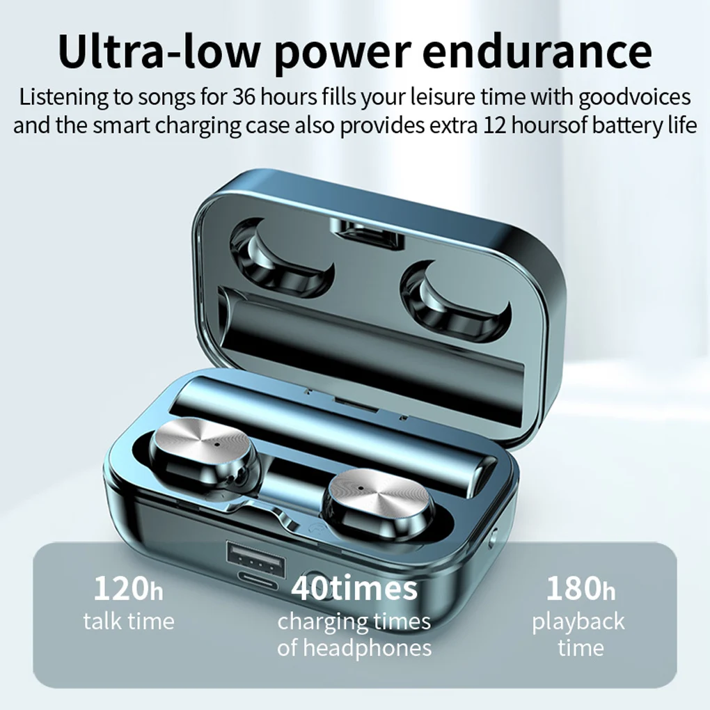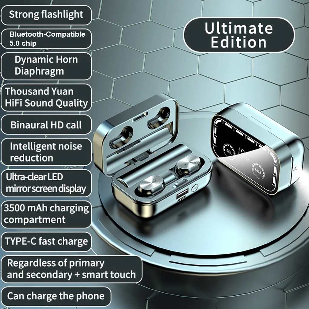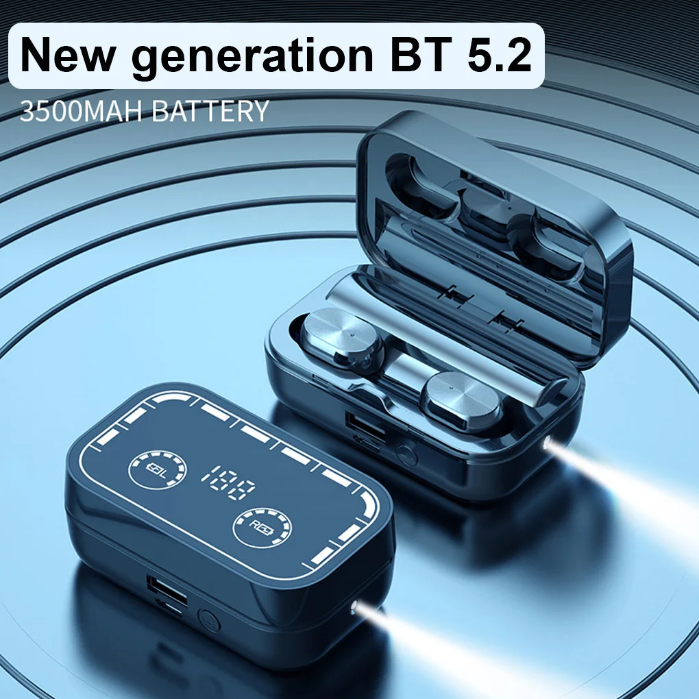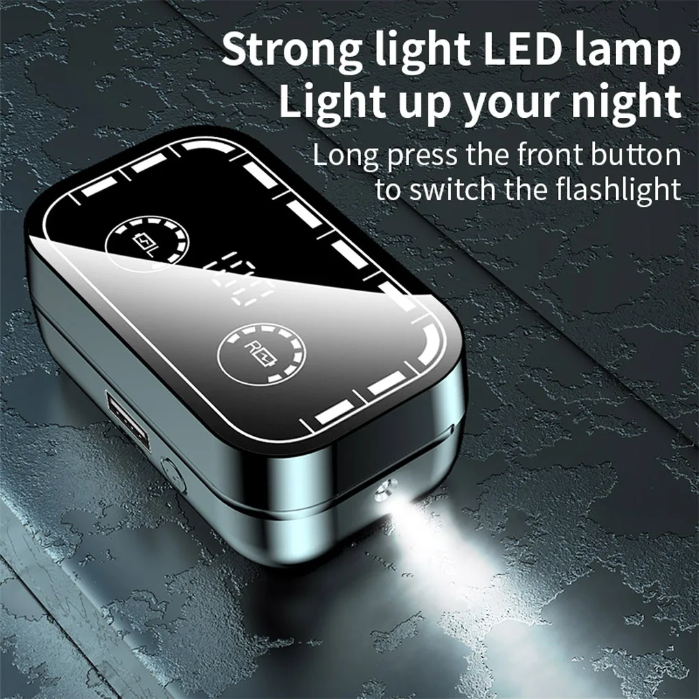 Linterna DE EMERGENCIA: este auricular TWS tiene una linterna que se puede usar para iluminar la mesa o la carretera, lo que hace que el auricular sea más práctico.