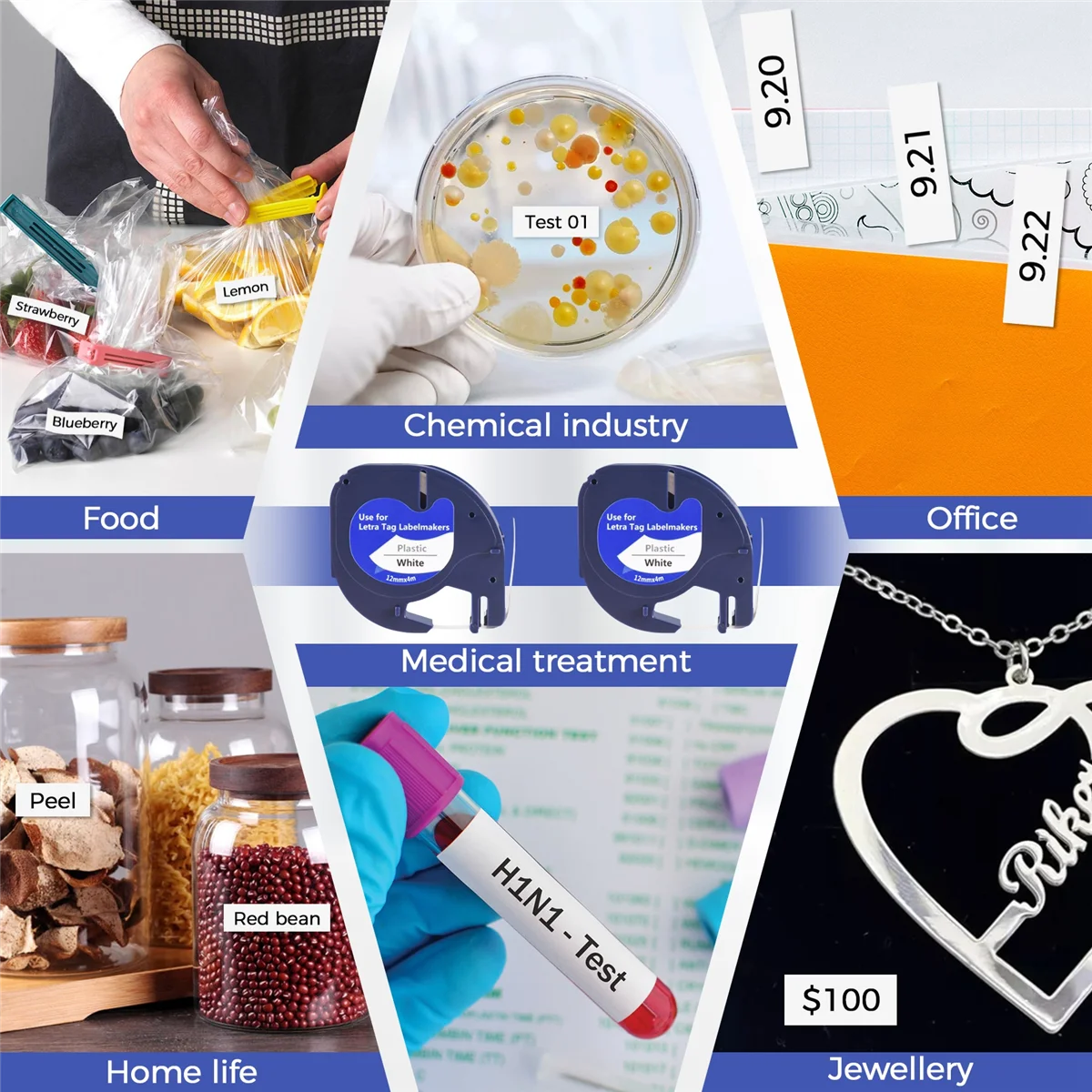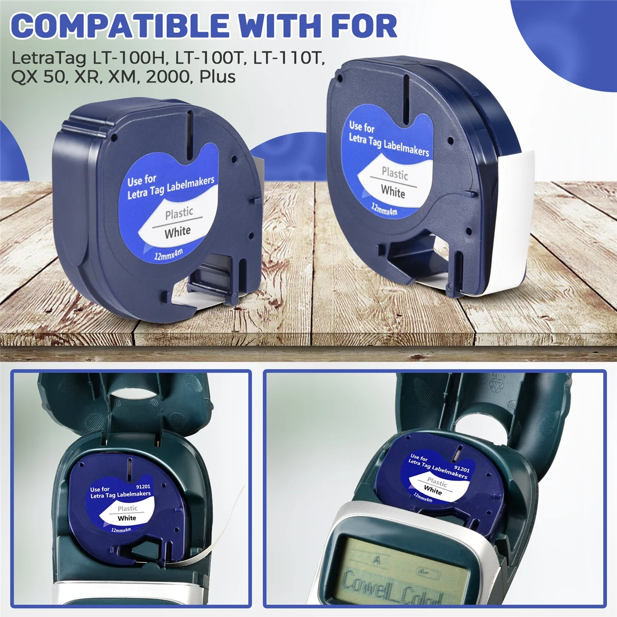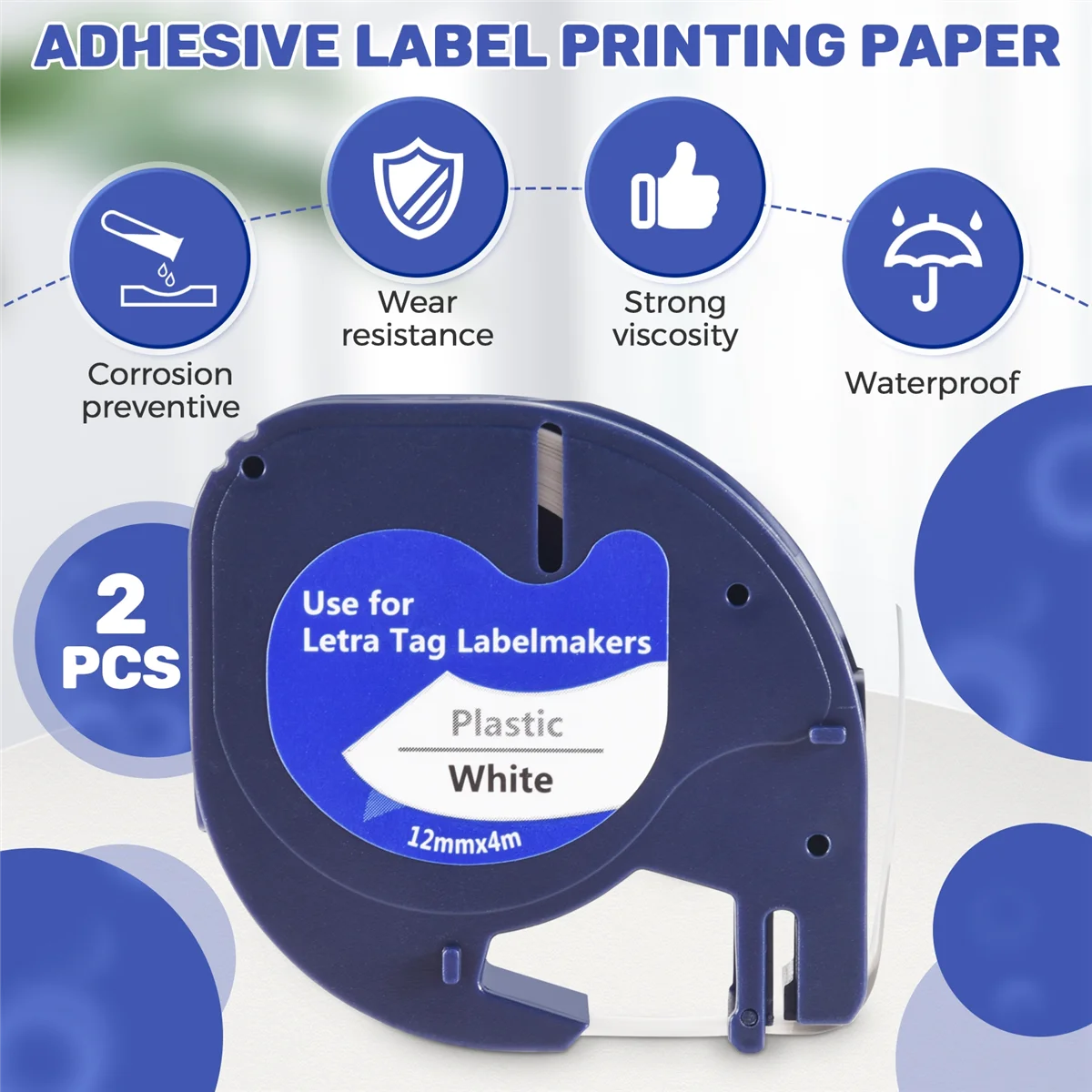 Asegúrate de que se ajuste introduciendo tu número de modelo. Funciona genial y es compatible con la cinta de etiquetas a prueba de agua 100%. Anti-Alcohol antifricción, Compatible con DYMO LetraTag 2000, 1, 2, 2, 2, QX 50, XR, XM, más fácil de despegar que el original. Modelo: LT Equipo aplicable: para impresora DYMO LetraTag Ancho: 12mm Longitud: 4m Película cubierta: sin Color de etiqueta: texto negro sobre fondo blanco color: azul Material:Colloid Lista de embalaje: 2 x Etiqueta de película Solo el contenido del paquete anterior, otros productos no están incluidos. Nota: La luz y las diferentes pantallas pueden hacer que el color del artículo en la imagen sea un poco diferente del real. El error de medición permitido es +/- 1-3cm.