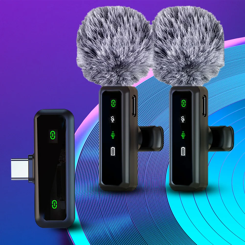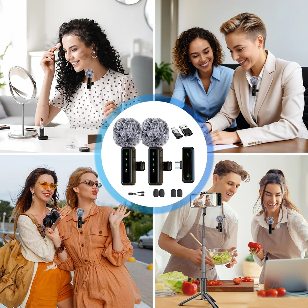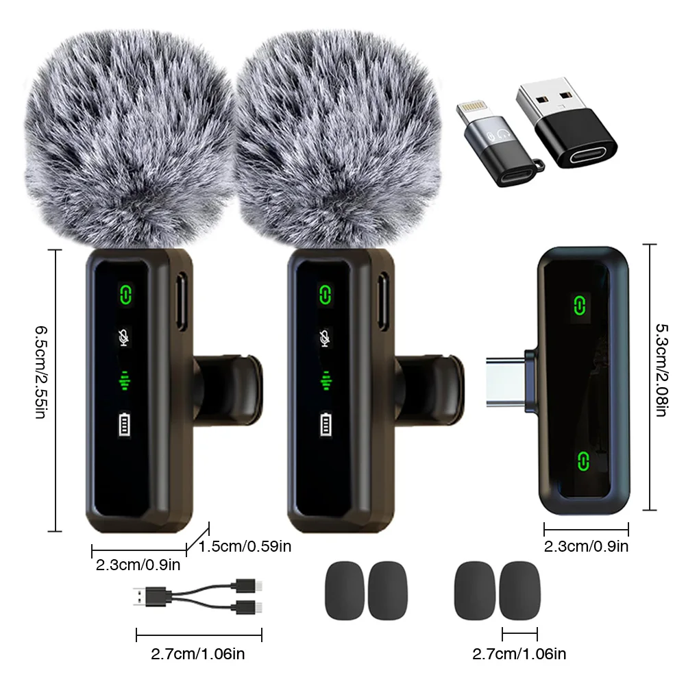 Paquete de 2 micrófonos lavalier inalámbricos con clip magnético Micrófono inalámbrico con cancelación de ruido Micrófono inalámbrico Plug and Play para Android/para grabación de vídeo de iPhone