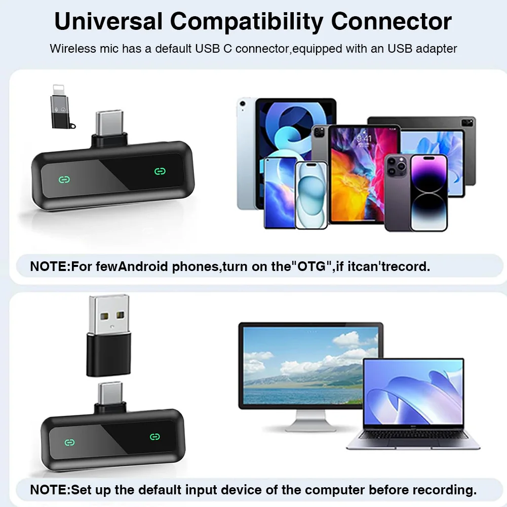 4.Mini micrófono compacto, amplia compatibilidad:Diseñado con un clip desmontable, el micrófono inalámbrico es compatible con iPhone 15/iPhone serie 16, teléfonos Android,