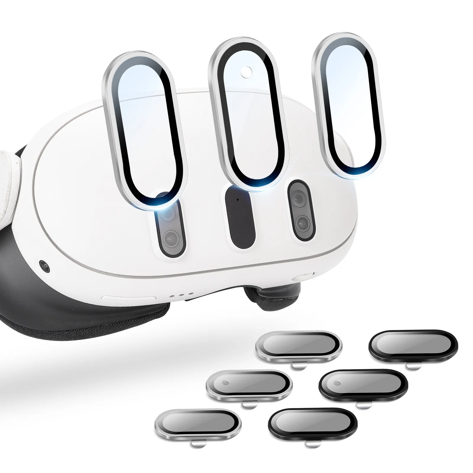 Comprar Paquete de 2 películas protectoras de lentes de cámara de vidrio templado compatibles con Oculus Meta Quest 3 marco protector de aleación antiarañazos