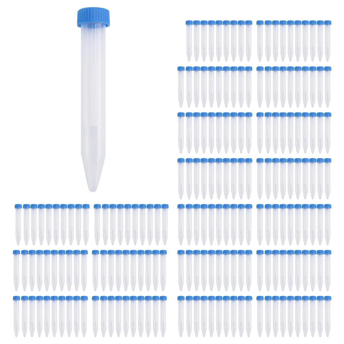 Comprar Paquete de 200 tubos de centrífuga cónicos de 15 ml, tubos de ensayo de plástico estériles con tapas de rosca, contenedor cónico de polipropileno