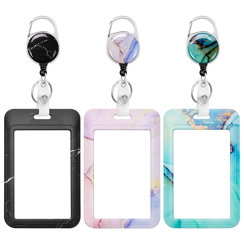 Comprar Paquete de 3 portatarjetas con carrete retráctil, etiqueta de nombre de identificación, insignia de trabajador, mosquetón, Clip, Protector de tarjeta, funda de plástico