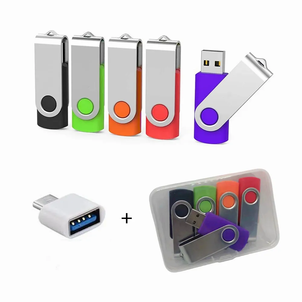Comprar Paquete de 5 con logotipo personalizado, memoria flash USB 2.0 giratoria Simple con puerto/caja tipo C