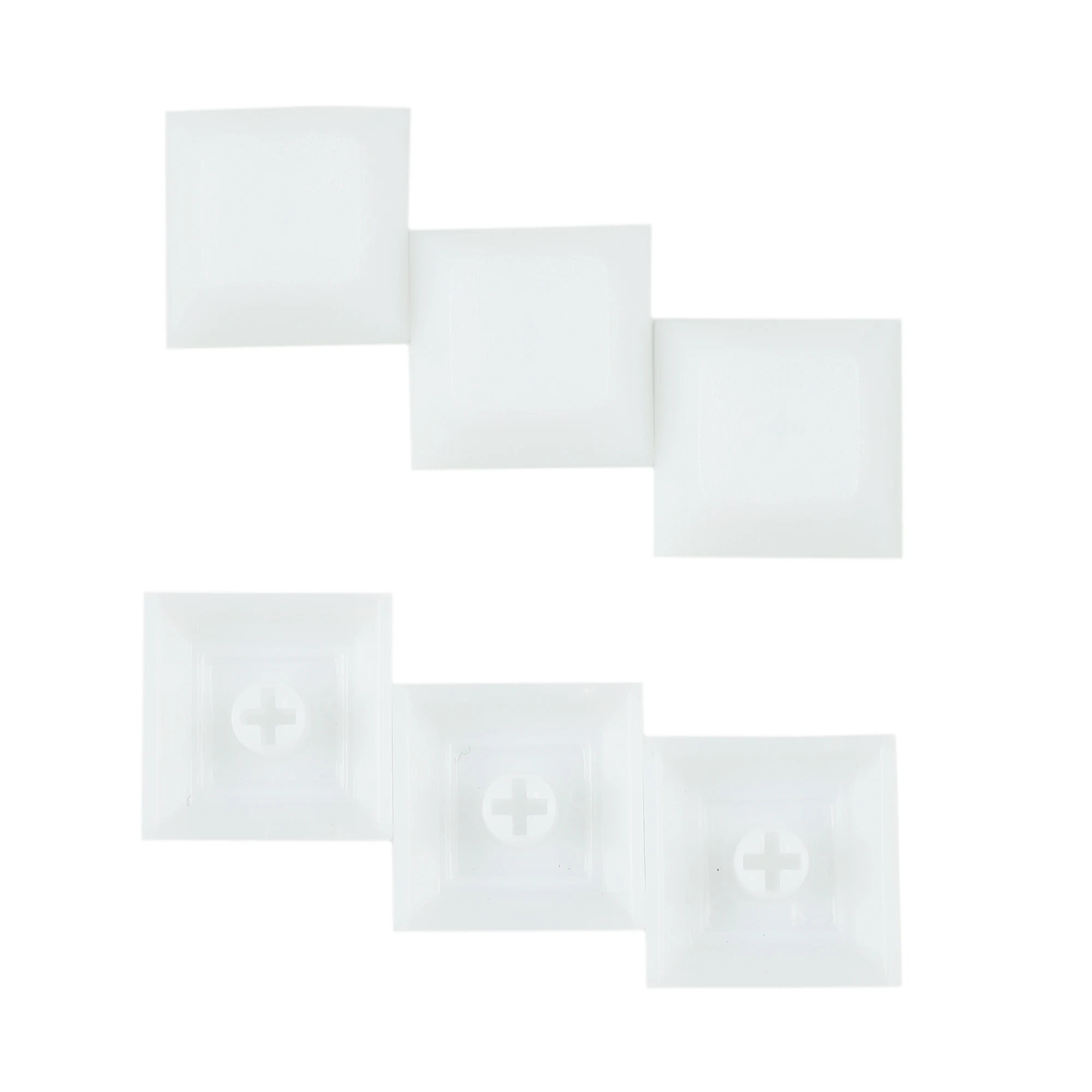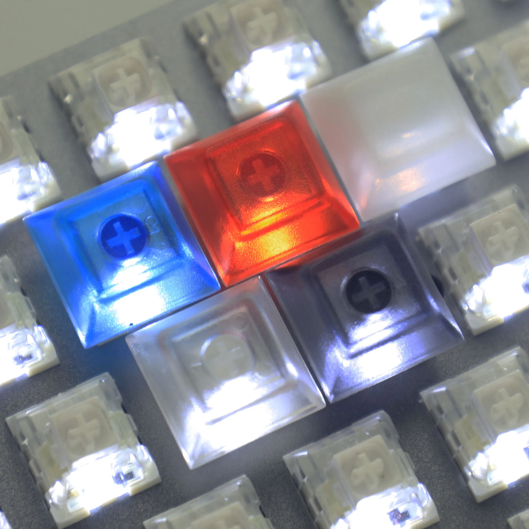 Las teclas transparentes, blancas, negras, azules, rojas y antiniebla están hechas de ABS. Todos los demás colores están hechos de PBT duradero.El espesor es de aproximadamente 1,4 mm.