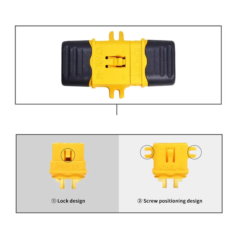 XT60L Paquete de batería de alimentación de 2 pines Erminal Macho Famle Conectores Adaptador Anti-solto Arrastre Be Versión fija Conector de aviación