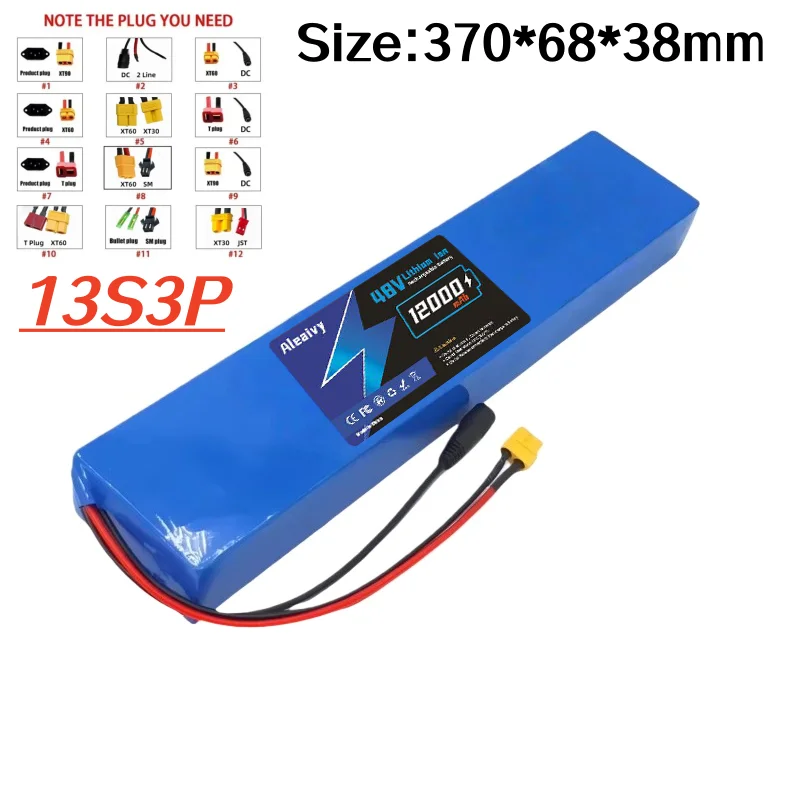 Parámetros de la batería:Modelo de batería: 48V 12Ah (12000mAh)Capacidad nominal (ah): 12AhTensión nominal (V): 48VDescripción técnica: batería de 3,7 V 18650Combinación de unidades: 3 series 13 paralelasTamaño de la batería: 370*70*40mm (± 2mm)Número de baterías (paralelo * Serie): 39.Tensión de descarga (V): 30 +/- 1VTensión de carga (V): 54,6 VCorriente de descarga nominal (a): 15 ACorriente de descarga máxima instantánea (a): 30ACorriente máxima de descarga continua (a): 15AModo de carga: CC/CVCorriente de carga estándar (a): 2ATiempo de carga de corriente de carga estándar: 4HCarga máxima de corriente continua (A): 5ATiempo de carga actual rápido: 2 horasRango de temperatura de carga: 0-45℃Rango de temperatura de descarga: -20-60℃Peso de la batería: aproximadamente 1,6 kg