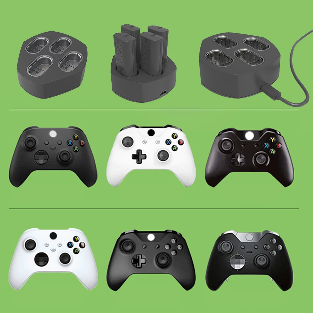 Compatible conLos controladores de la serie Xbox ofrecen una amplia compatibilidad. Con múltiples combinaciones de baterías, puede disfrutar de una rotación de energía ininterrumpida, lo que garantiza una experiencia de juego más duradera y fluida.