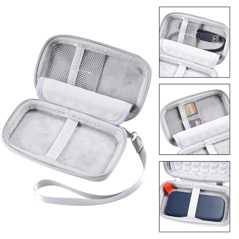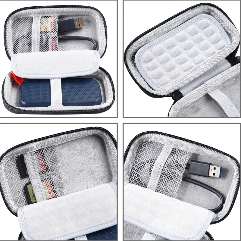 Bolsillo para accesorios integrado, fácil de colocar los dispositivos, cables, tarjetas y accesorios.