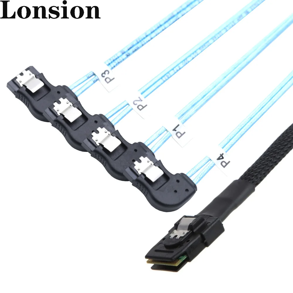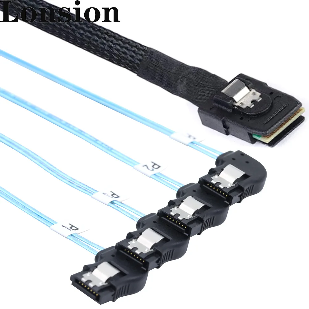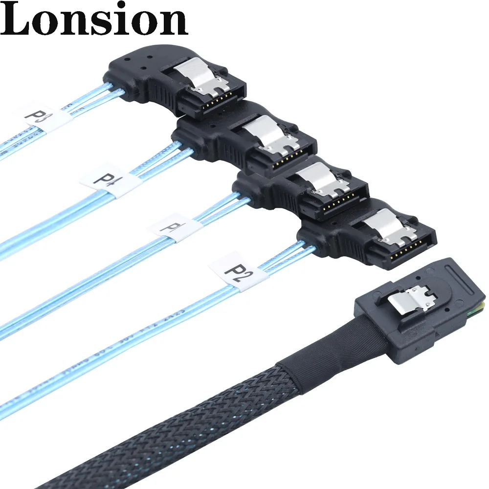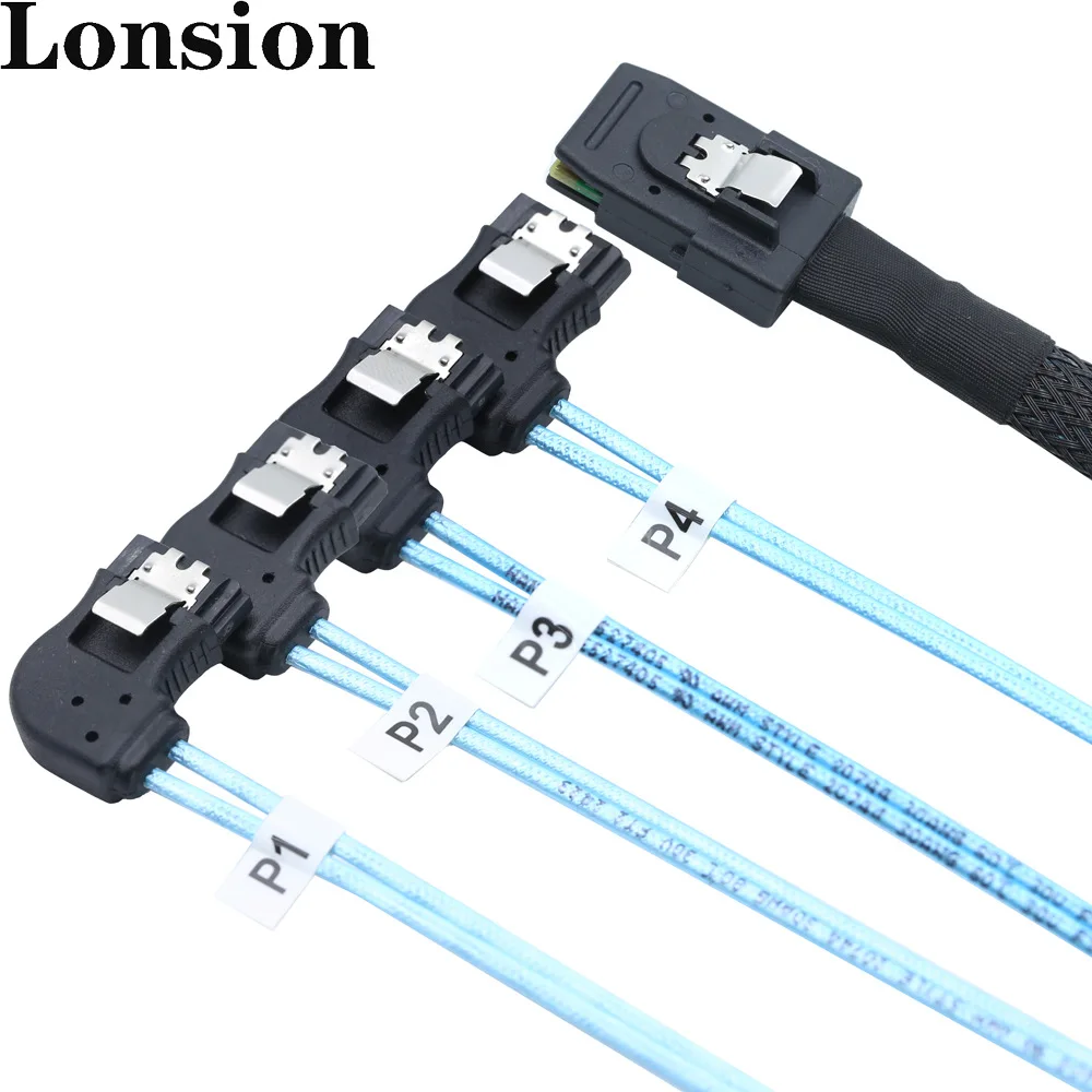 Cable MINI SAS HD a 4x SATA-Paquete de conexión interna de servidor de alta velocidad en ángulo recto