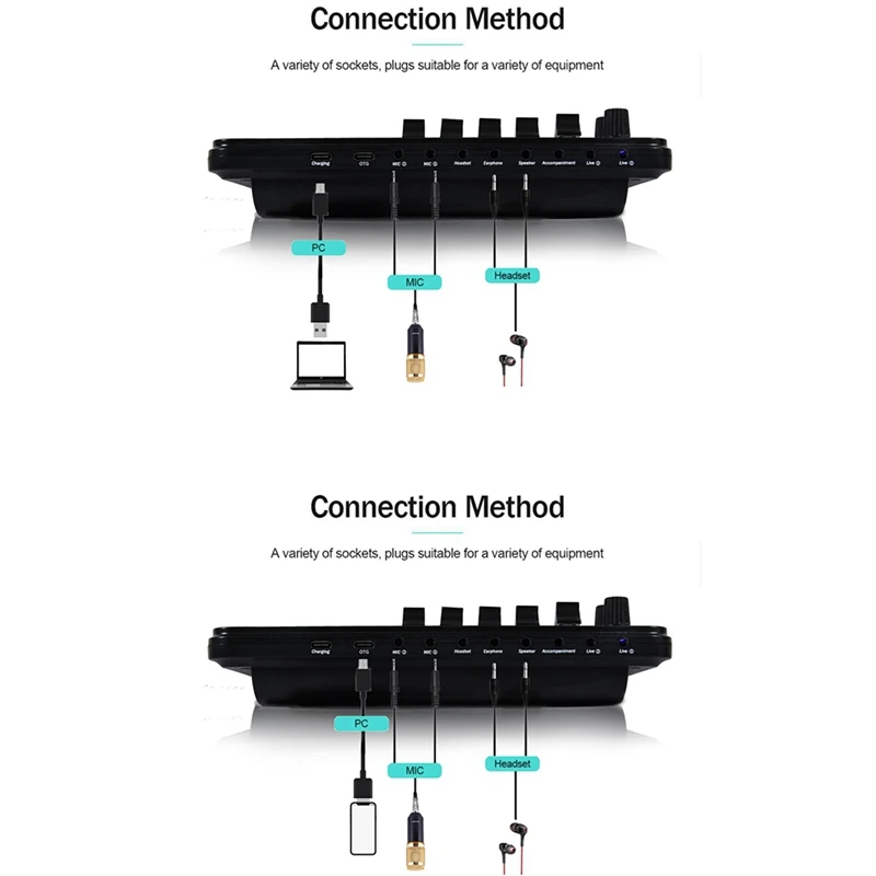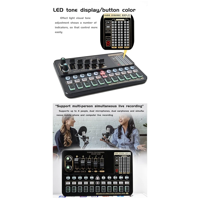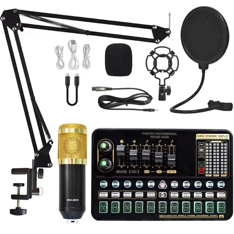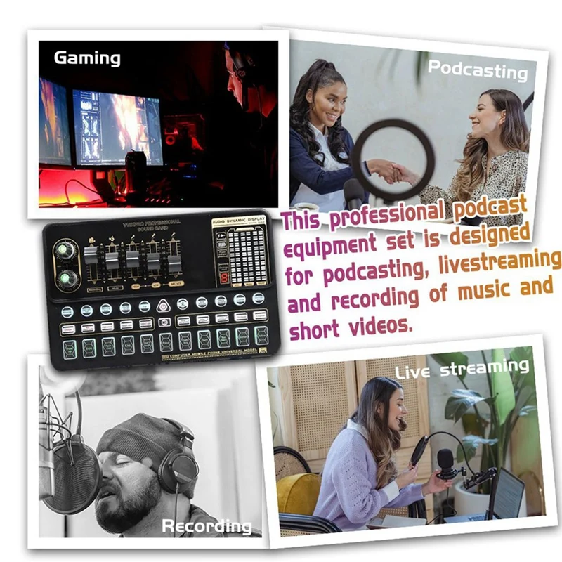 3.Tarjeta de sonido V10xpro: Compatible con teléfonos móviles y juegos de micrófonos de tarjeta de sonido de transmisión en vivo para computadora, micrófonos duales; Monitoreo de auriculares duales; Transmisión en vivo de teléfonos móviles y computadoras con tres plataformas