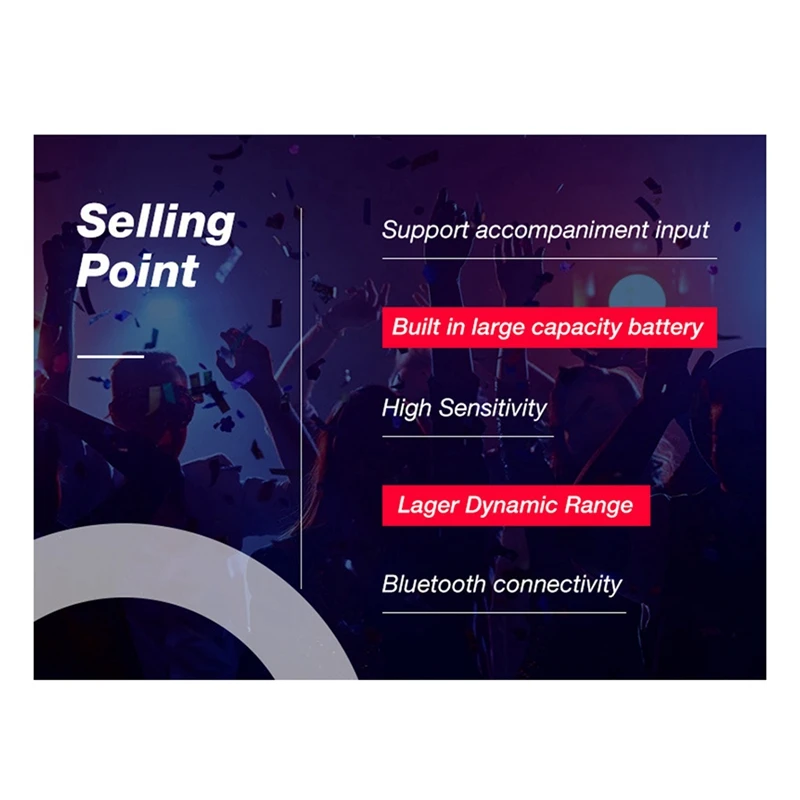 1.Sensibilidad del micrófono de metal: micrófono de condensador de metal, fuerte captación de sonido, alto grado de restauración y calidad de sonido clara.
