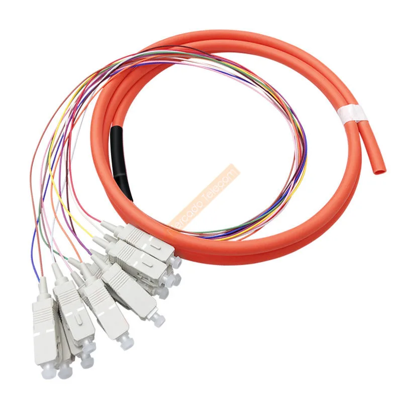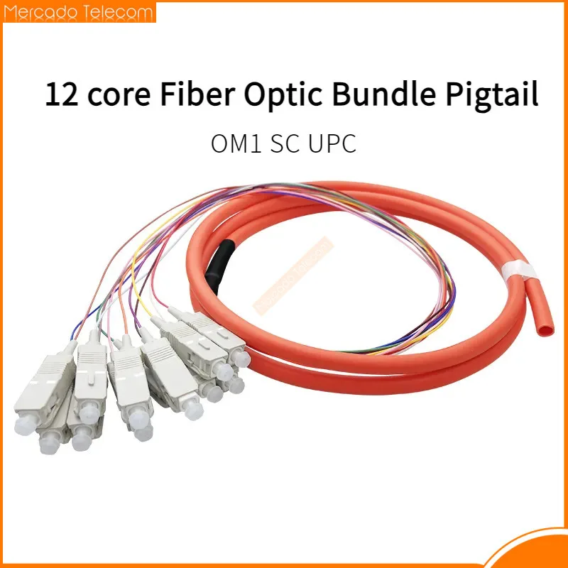 Comprar Paquete de fibra óptica de 12 núcleos Pigtail SC UPC fibra óptica multimodo MM OM1 62,5/125, 1,5 metros
