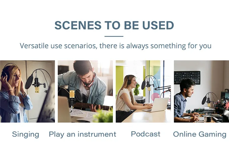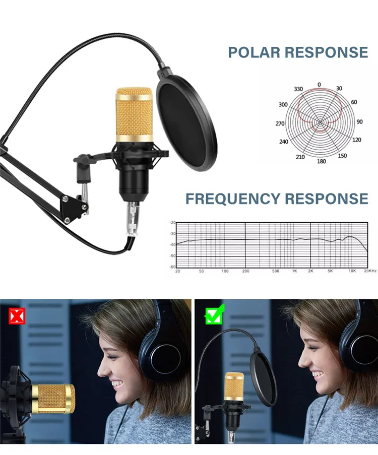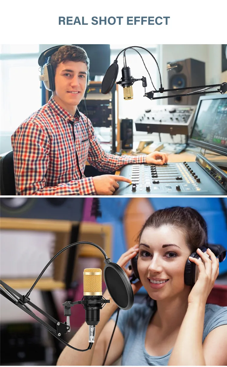 Comprar Paquete de grabación de micrófono de estudio BM800, micrófono de habitación profesional para webcast, estudio en vivo, grabación, canto amplio