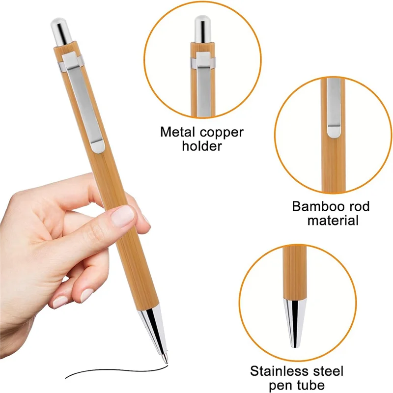 Nuestro bolígrafo de madera está hecho de madera de bambú de alta calidad, respetuoso con el medio ambiente y sin plástico, exquisitamente procesado, de peso moderado, bolígrafo de bambú liviano y elegante.